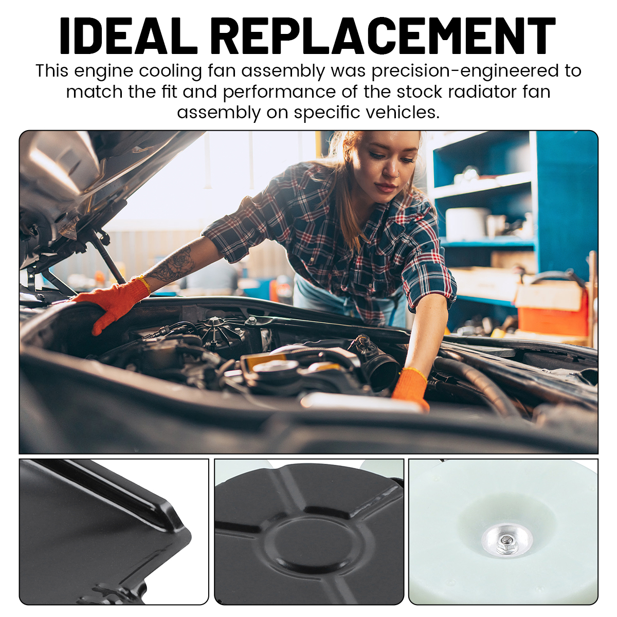 2.Ideal replacement.This engine cooling fan assembly was precision-engineered to match the fit and performance of the stock radiator fan assembly on specific vehicles.