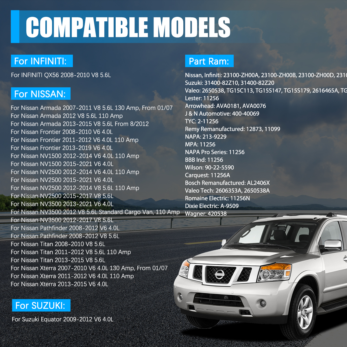 Nissan Armada 2007-2011 V8 5.6L 130 Amp, From 01/07
