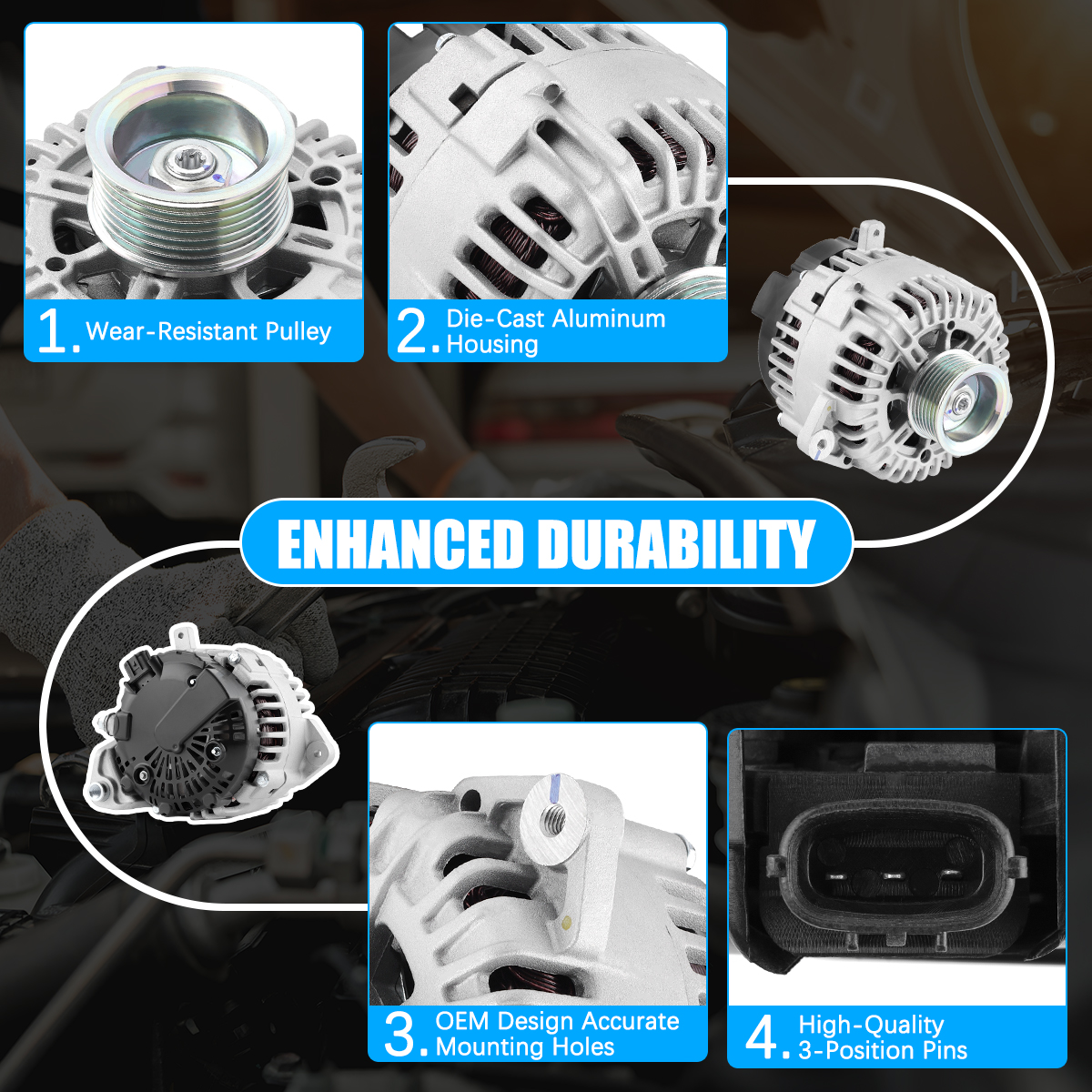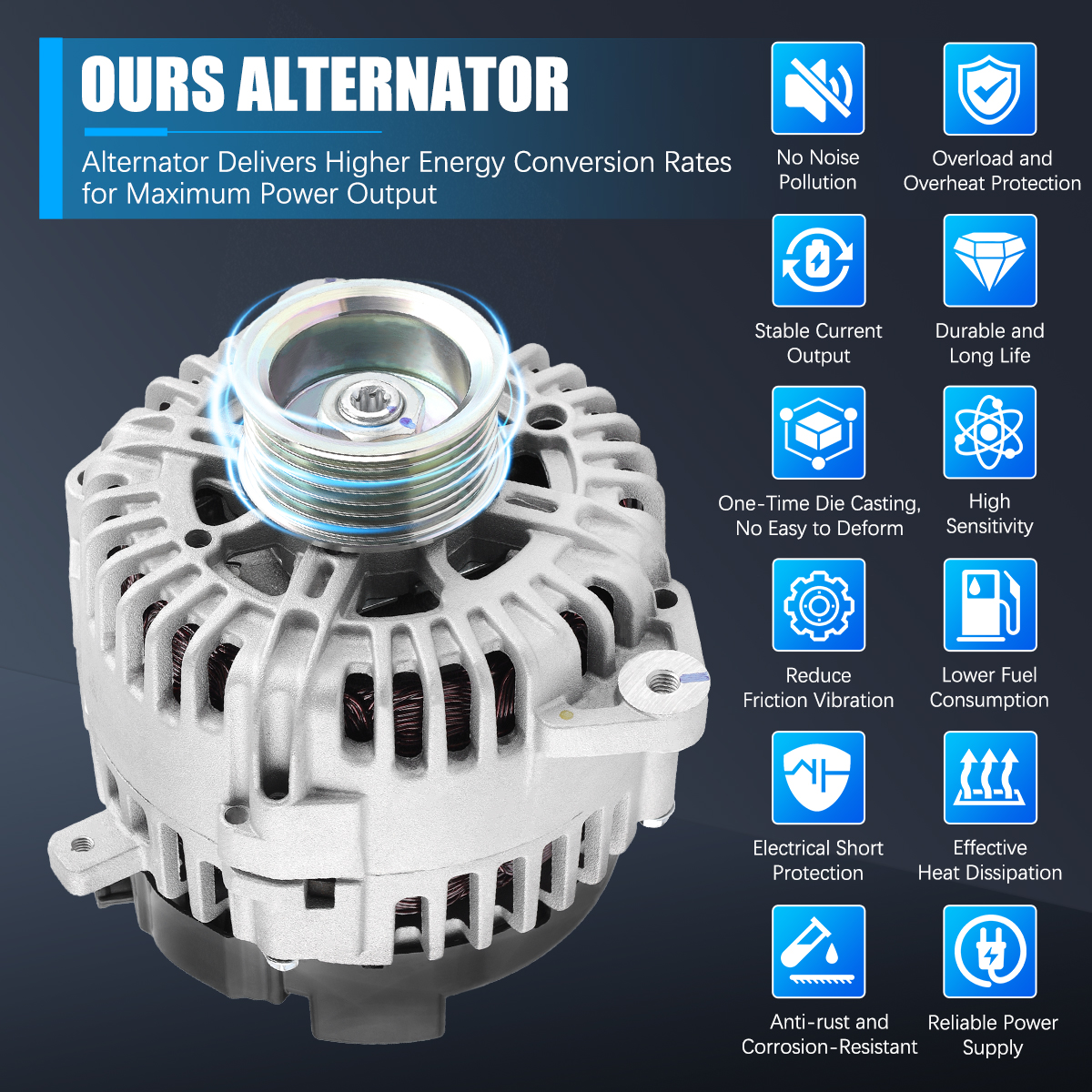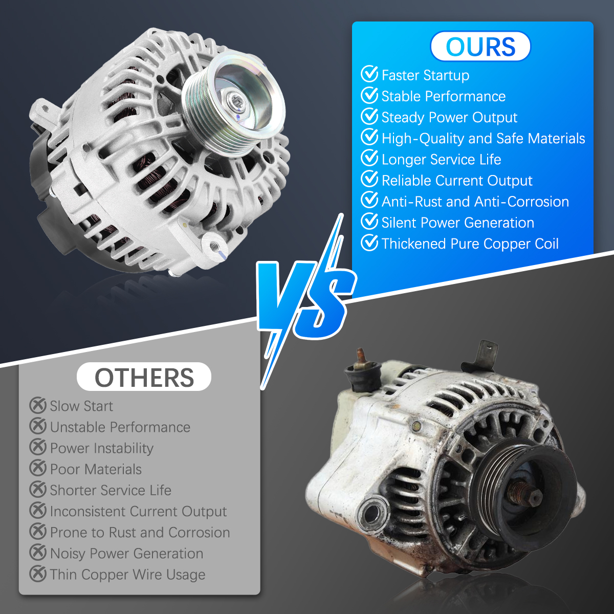 This automotive alternator provides high efficiency and reliability, ensuring stable power supply for your vehicle. It utilizes modern design and manufacturing technologies to deliver excellent performance and provide reliable power for various electrical equipment and charging systems.