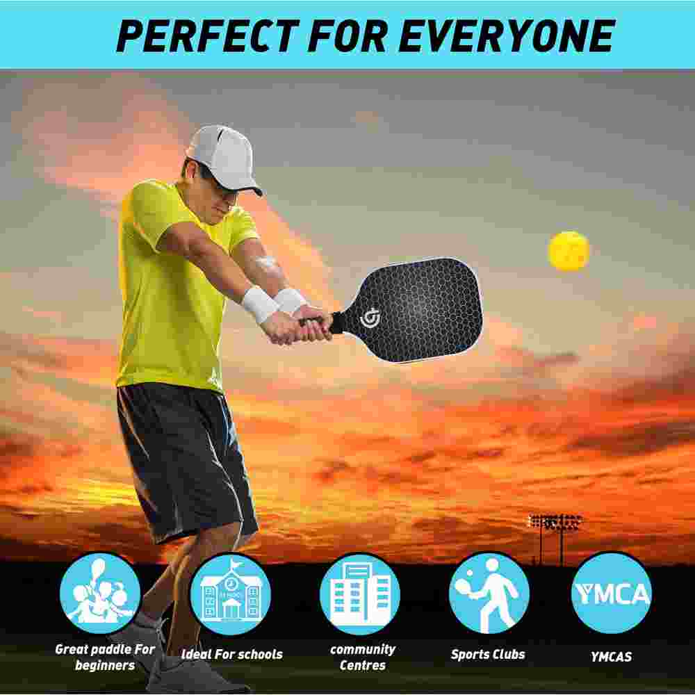 Enhanced Power with Reduced Noise: Sportic pickleball racket features a fiberglass face and a Polypropylene-honeycomb structure, delivering an optimal balance of strength and rigidity in an astonishingly lightweight design. The fiberglass face provides more power, cushioning each hit with exceptional pop. Polypropylene's larger, softer honeycomb cells make it an ideal material for durable pickleball paddles that offer quieter play without compromising power.