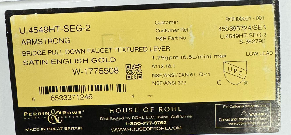 The Armstrong Kitchen Collection is a perfect blend of modern luxury and industrial design. Inspired by Joseph and George Armstrong brothers and pioneers of the Industrial Revolution in Wolverhampton the English town where Perrin & Rowe products are still manufactured today. Perrin and Rowe U.4549HT-2 Features: Covered under Perrin & Rowe s limited lifetime warranty Faucet body constructed of brass Coordinates with products from the Armstrong line seamlessly Widespread faucet mounting type Deck mounted faucet installs directly to sink or countertop Pull - down spray Swivel spout allows for greater access to all areas of the sink Includes a ceramic disc cartridge Mounting hardware included Perrin and Rowe U.4549HT-2 Specifications: Height: 18-1/2? (deck to top of faucet) Spout Height: 18-1/4? (deck to spout outlet) Spout Reach: 9-1/2? (center of faucet body to center of spout outlet) Flow Rate: 1.8 gallons-per-minute Faucet Hole Size: 1?