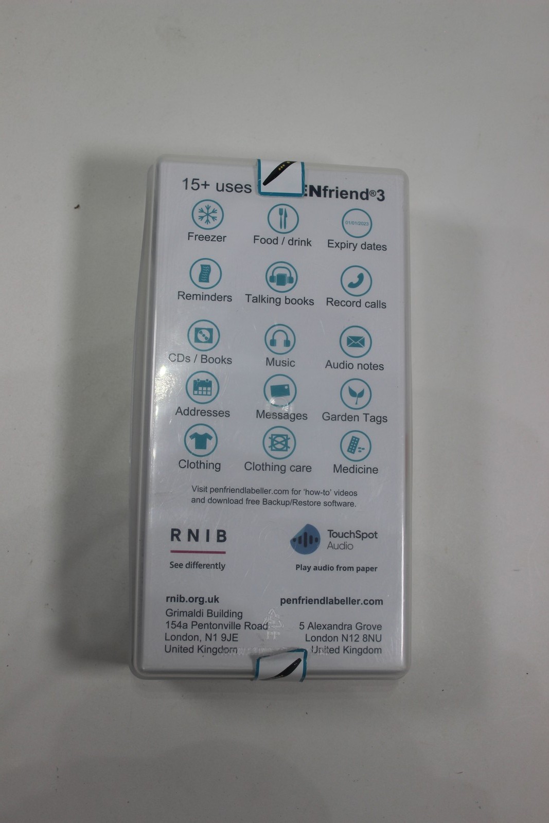 This item is either new or in like new condition. I don't think it's been used, but since I can't say for sure I'm listing it as such just to be on the safe side. Comes with retail box, lanyard, ~100 tactile stickers, 16GB MicroSD card (installed), recordable key fob, and talking instruction sheet.