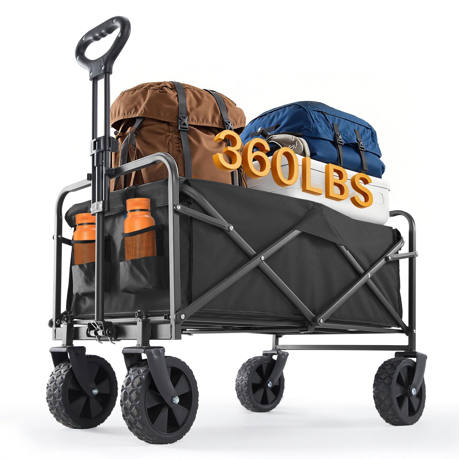 Sturdy and EnduringMade from high-quality 600D Oxford fabric, this collapsible wagon is durable, long-lasting, and resistant tears, and wear. Enjoy outdoor activities without worrying about harsh weather conditions affecting your cart.