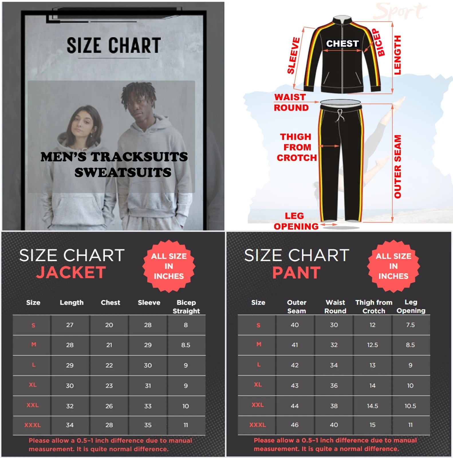 Important Notice: Please refer to the size chart provided in the product images to select the most accurate fit. Do not rely on Amazon's generic size chart, as our sizing may differ. For best results, machine wash in cold water. This helps prevent shrinking, fading, and color bleeding, keeping your tracksuit looking fresh and new.