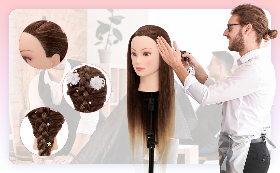 Breite Anwendung: Der Friseurkopf ist ein großes Geschenk für Ihre Tochter, Kosmetikstudenten, Friseure, Friseur, Friseur, Saloon Shops und Anfänger Mutter, um Frisuren zu üben. Es kultiviert praktische Fähigkeiten und entwickelt die Vorstellungskraft Ihres kleinen Mädchens.