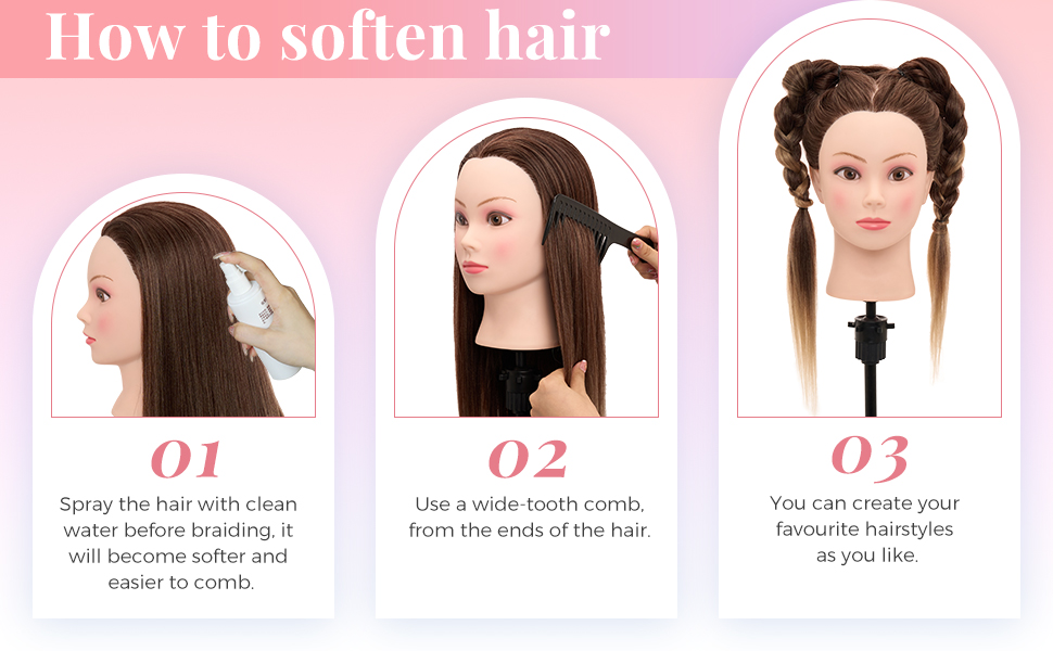 Hohe Qualität: Der Trainingskopf besteht aus 100% synthetischem Faserhaar, 26 Zoll buntem langem Haar, was es leicht macht, verschiedene Frisuren zu tun.