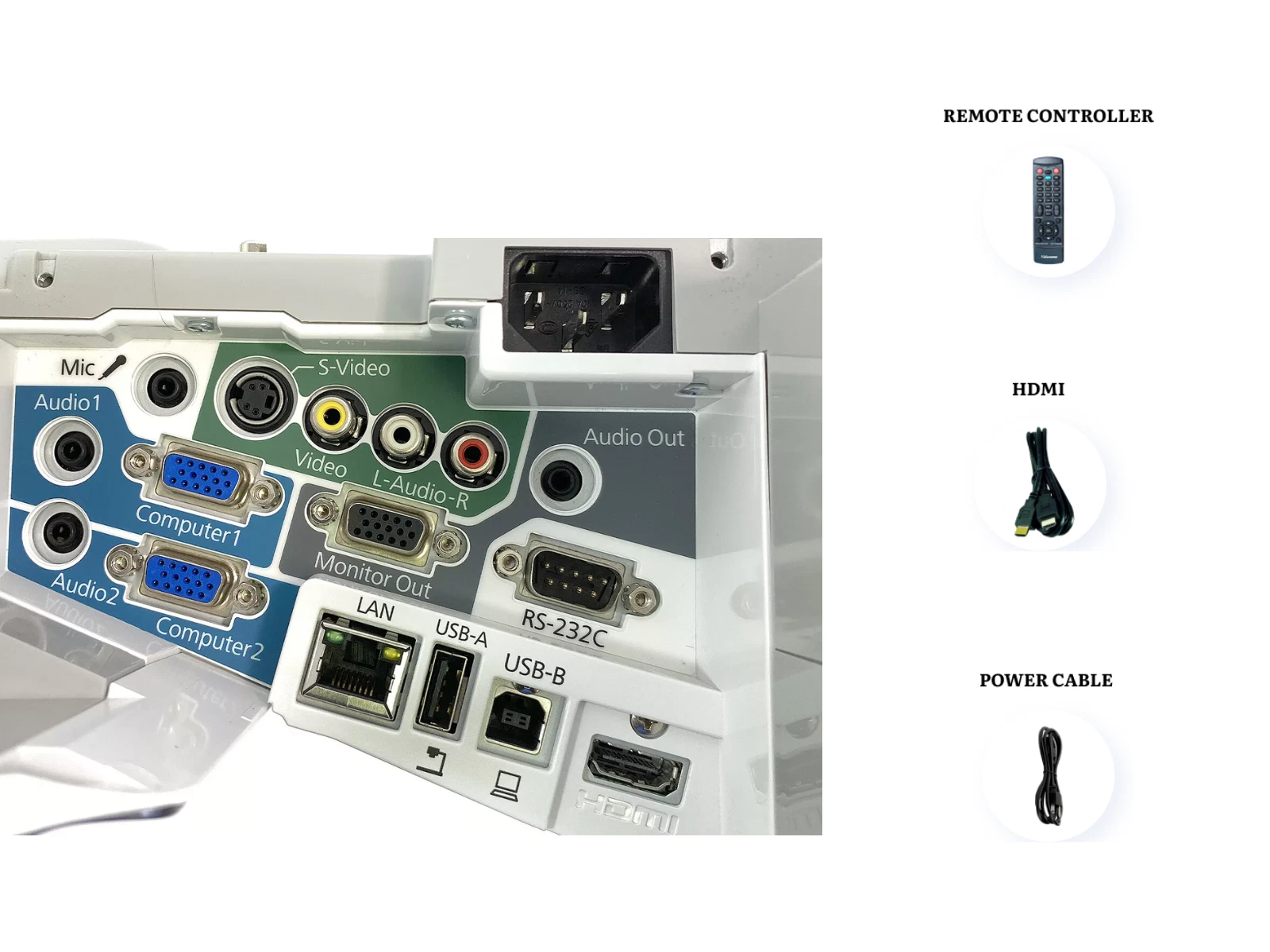 The Epson PowerLite 470 Projector is a XGA Ultra Short Throw (UST) Projector. This lamp based projector is capable of displaying 2,600 Lumens at its brightest setting with a native resolution of 1024x768 . The internal 3LCD technology is an innovative 3-chip design that sets itself apart by delivering vibrant, true-to-life images with better color brightness and a wider color gamut.