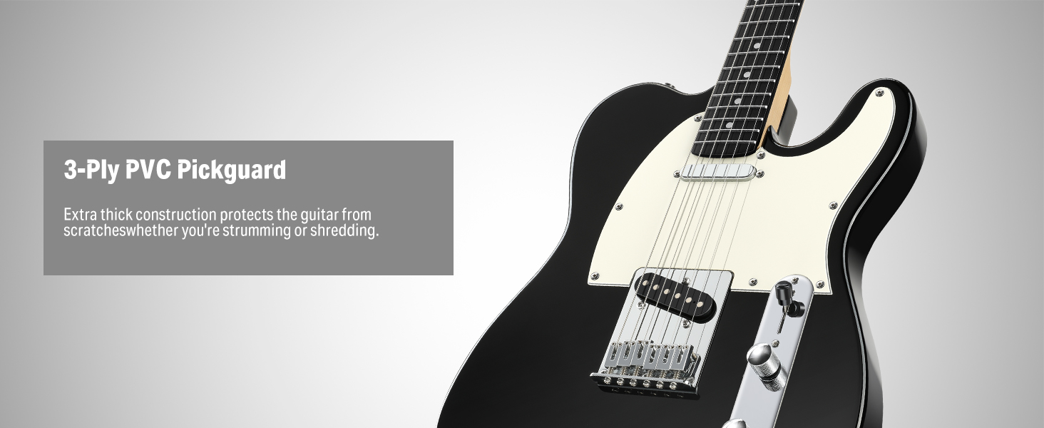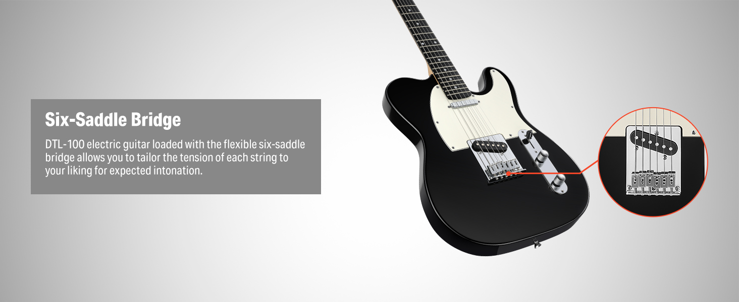 3-lagiges Schlagbrett & 6-Saiten-Steg – Die Donner TC E-Gitarre ist mit einem 4-lagigen Schlagbrett und einem Steg mit sechs Saitenreitern ausgestattet, wodurch jede Saite individuell und präzise gestimmt werden kann.