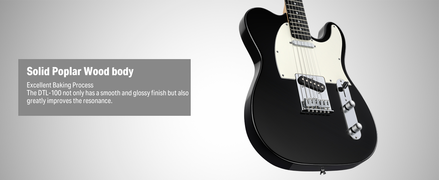 S-S-Tonabnehmer– Die Donner Tele E-Gitarre ist mit zwei klassischen Single-Coil-Tonabnehmern ausgestattet.