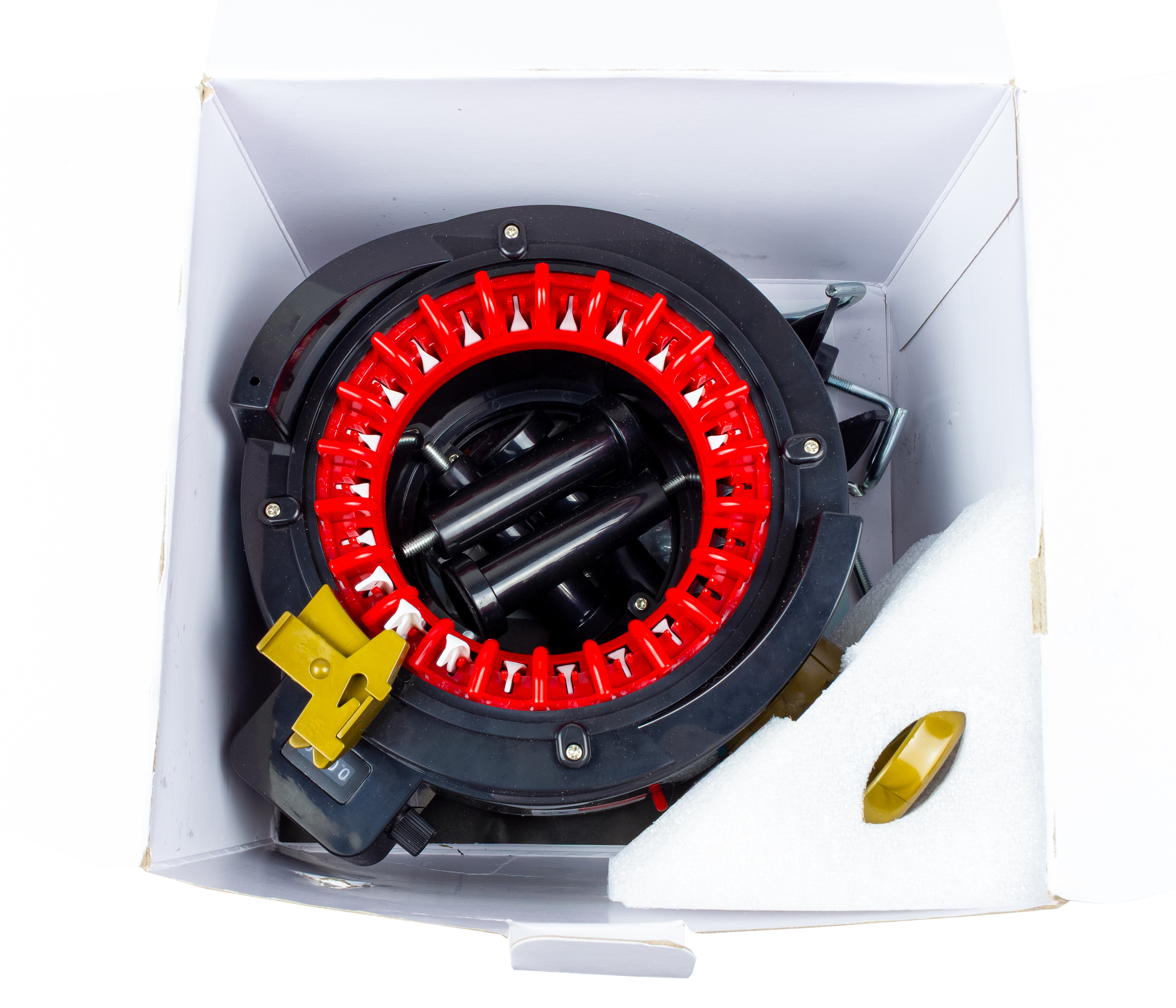 Es handelt sich um B-Ware / Versandrückläufer. Die Strickmaschine ist neu und wurde ggf. kurz angetestet.