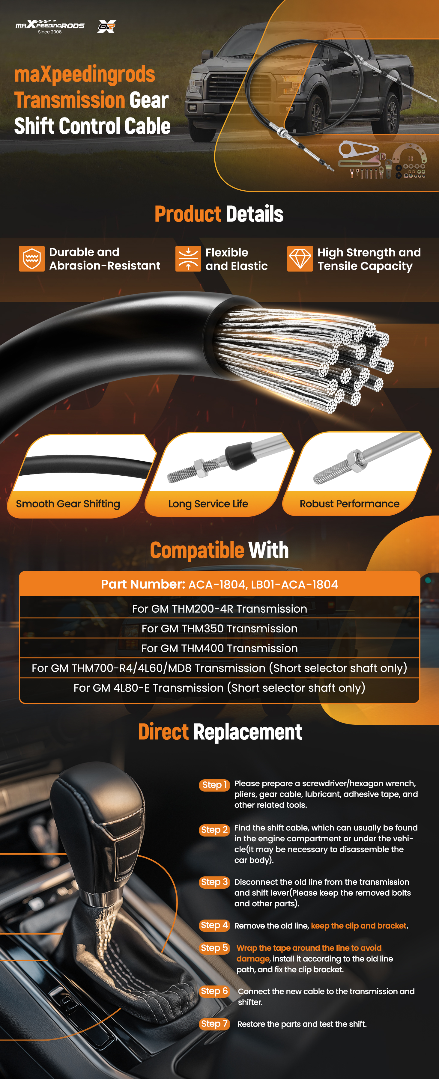 for GM THM700-R4/4L60/MD8 Transmission (Short selector shaft only)