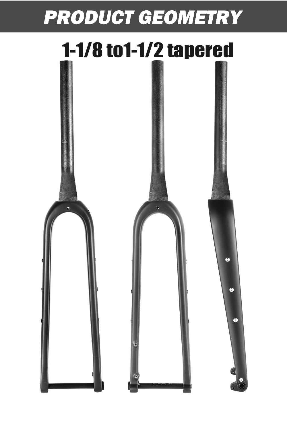 it offers excellent strength and lightweight performance. The fork is engineered exclusively for flat mount disc brakes and is not compatible with rim brakes, ensuring buyers choose the right setup. The quick release system makes wheel changes fast and easy. For added functionality, the fork features three mounting holes on each side to install racks or bottle cage , supporting loads of up to 5kg — perfect for gravel riding, touring, or bikepacking.
