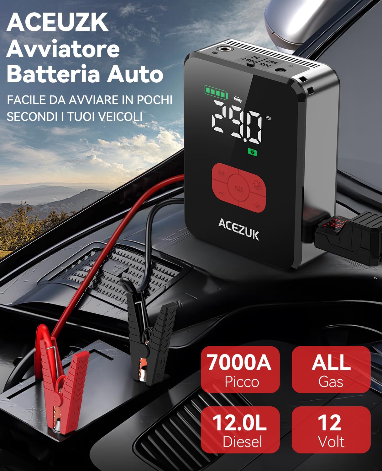 Avviatore Batteria Auto 7000A &150PSI Avviatore Emergenza per Auto/Moto con