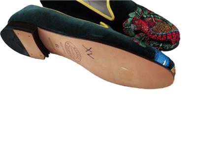 Classic Womens STUBBS & WOOTON + John Dorian Collaboration Slip On Shoes. Audubon in Green Velvet. Overall condition is Excellent - New. Size is 8.5.