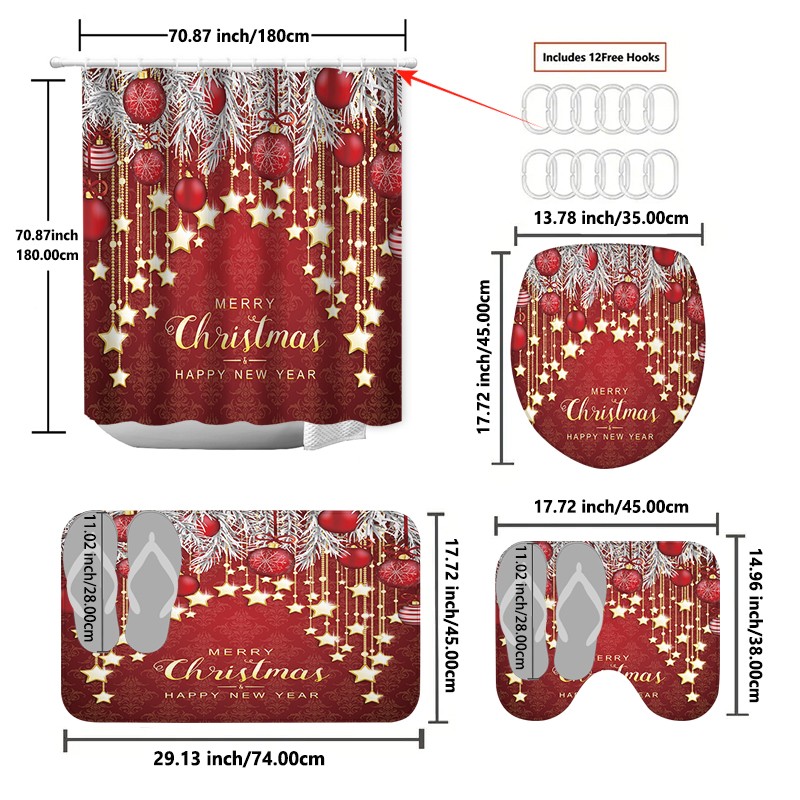 *Versatile Size: The set includes a shower curtain measuring 71 x 71 inches and various rugs suitable for standard bathroom dimensions, making it a perfect fit for most spaces and enhancing your holiday decor effortlessly.
