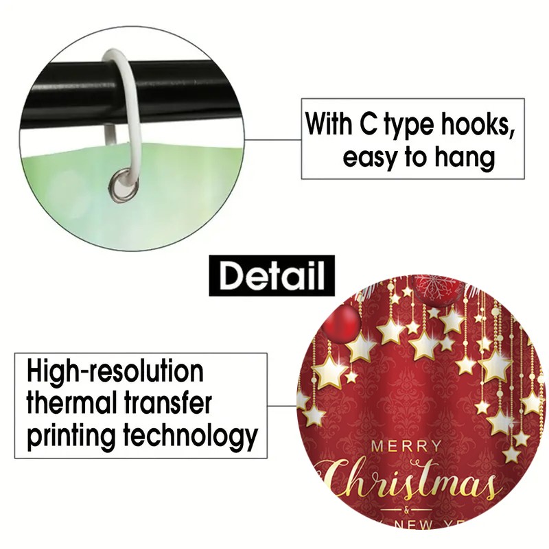 *Multi-functional Use: the bathroom, this Christmas shower curtain can be used in apartments, hotels, and dormitories, serving as a stylish partition or shade in dressing areas and retail spaces, bringing warmth to any environment.