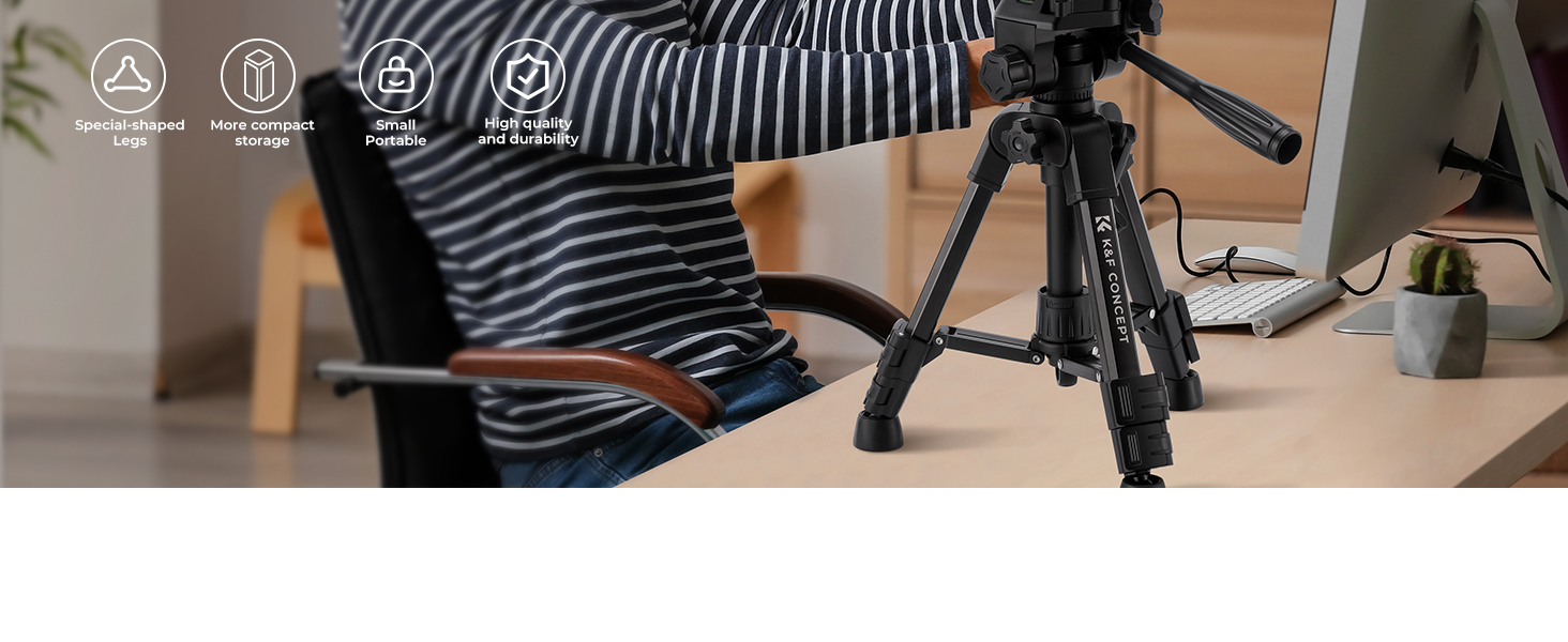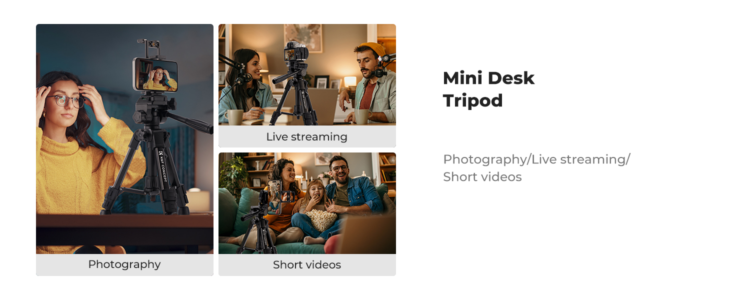 Weighing only 638g and collapsing to 30cm, this tripod features uniquely shaped tubes and an ABS+aluminum alloy construction. Its ultra-compact design makes it ideal for indoor shooting, video calls, and desktop content creation.
