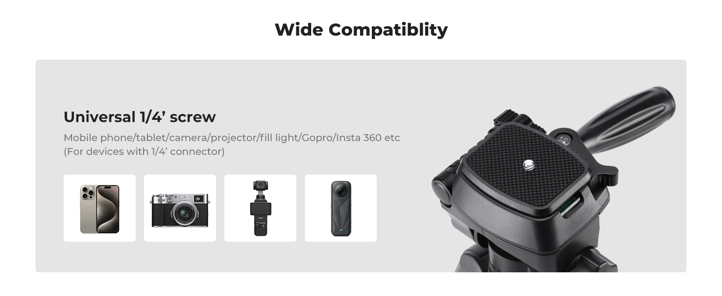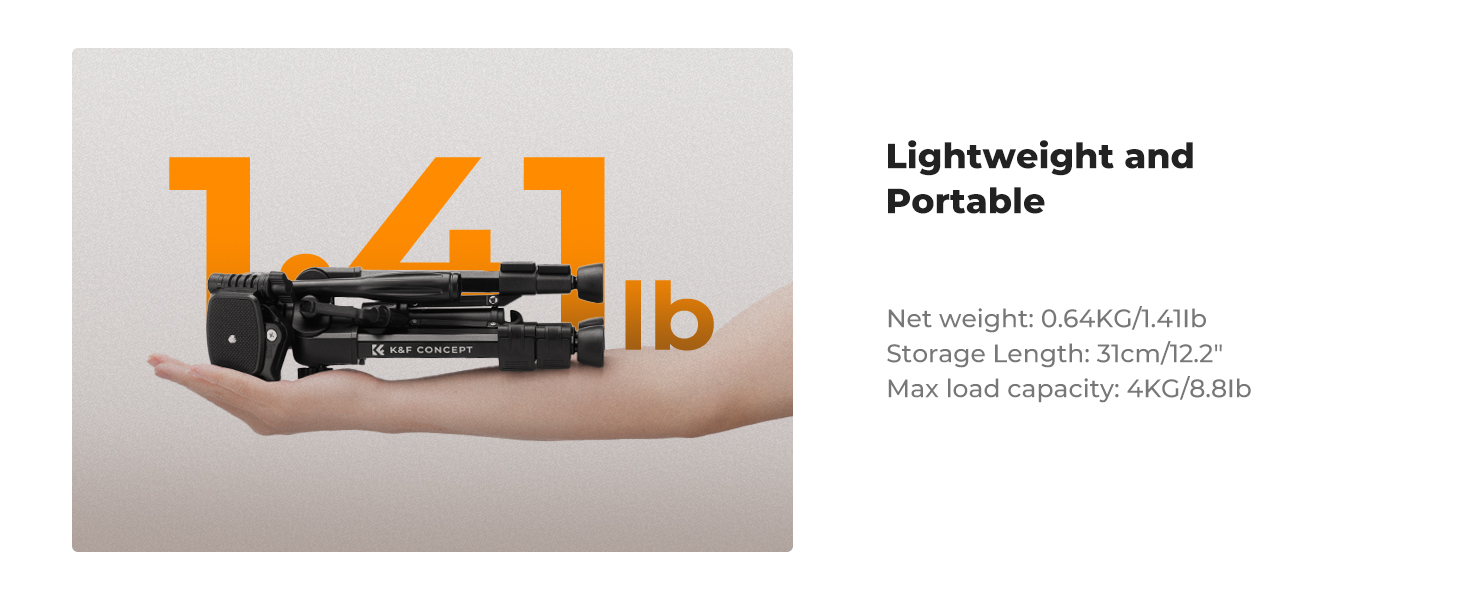 Built with 23mm large-diameter aluminum legs and a reinforced triangular structure, it supports up to 4kg. Perfect for mirrorless cameras, compact DSLRs, smartphones, tablets, and lighting gear.
