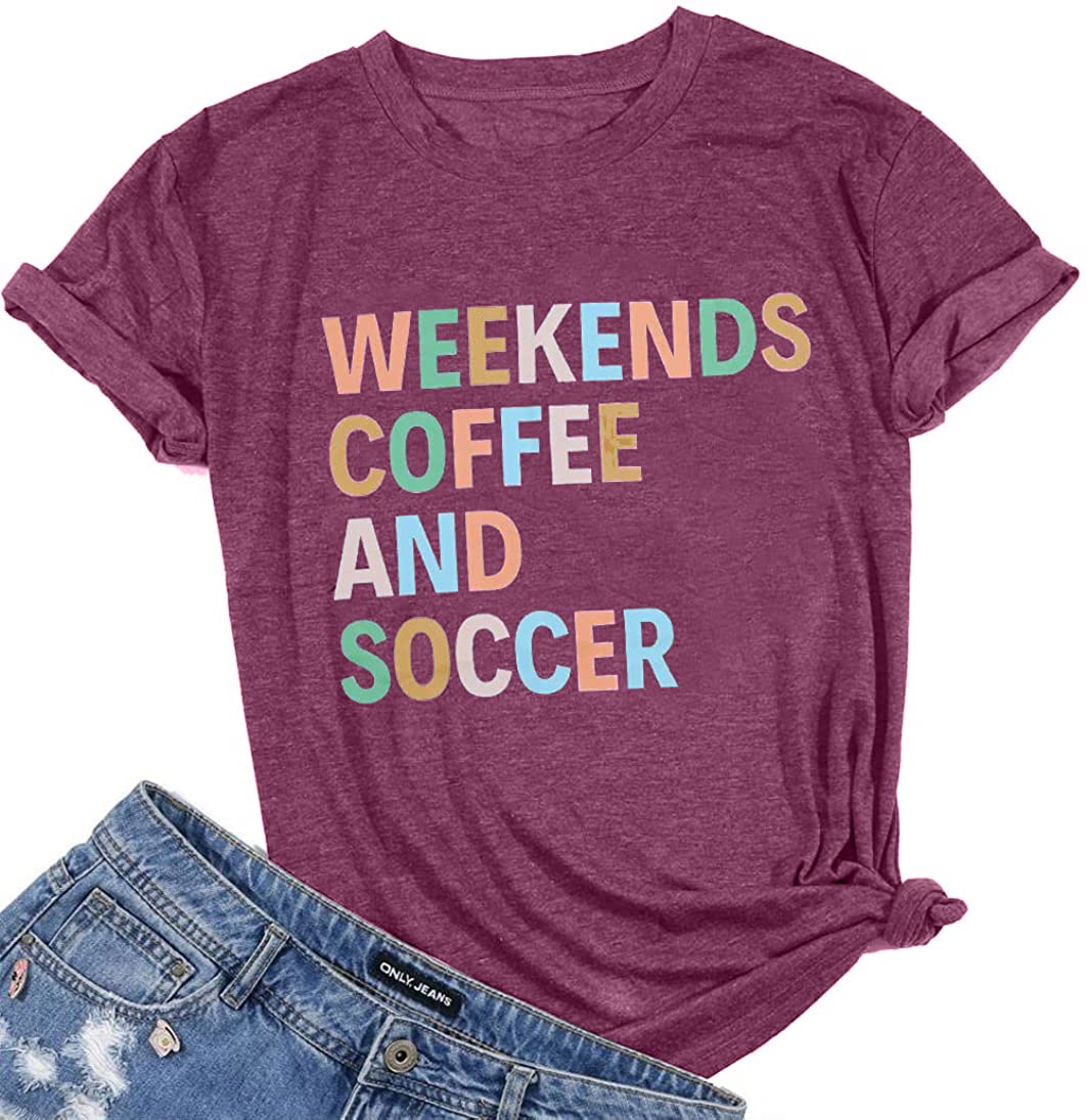 Weekends Coffee Shirt - Soccer Mom Tshirts for Women - Ball Letter Printed Short Sleeve Tee Tops