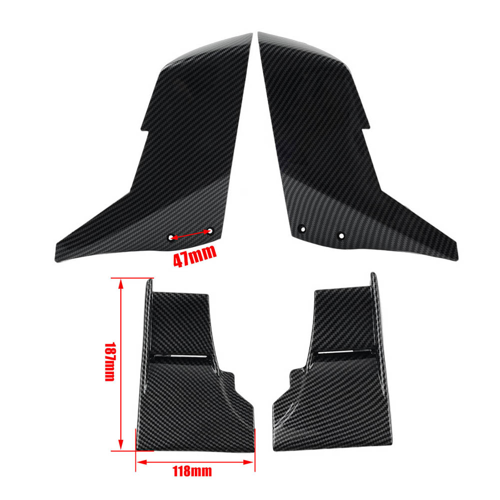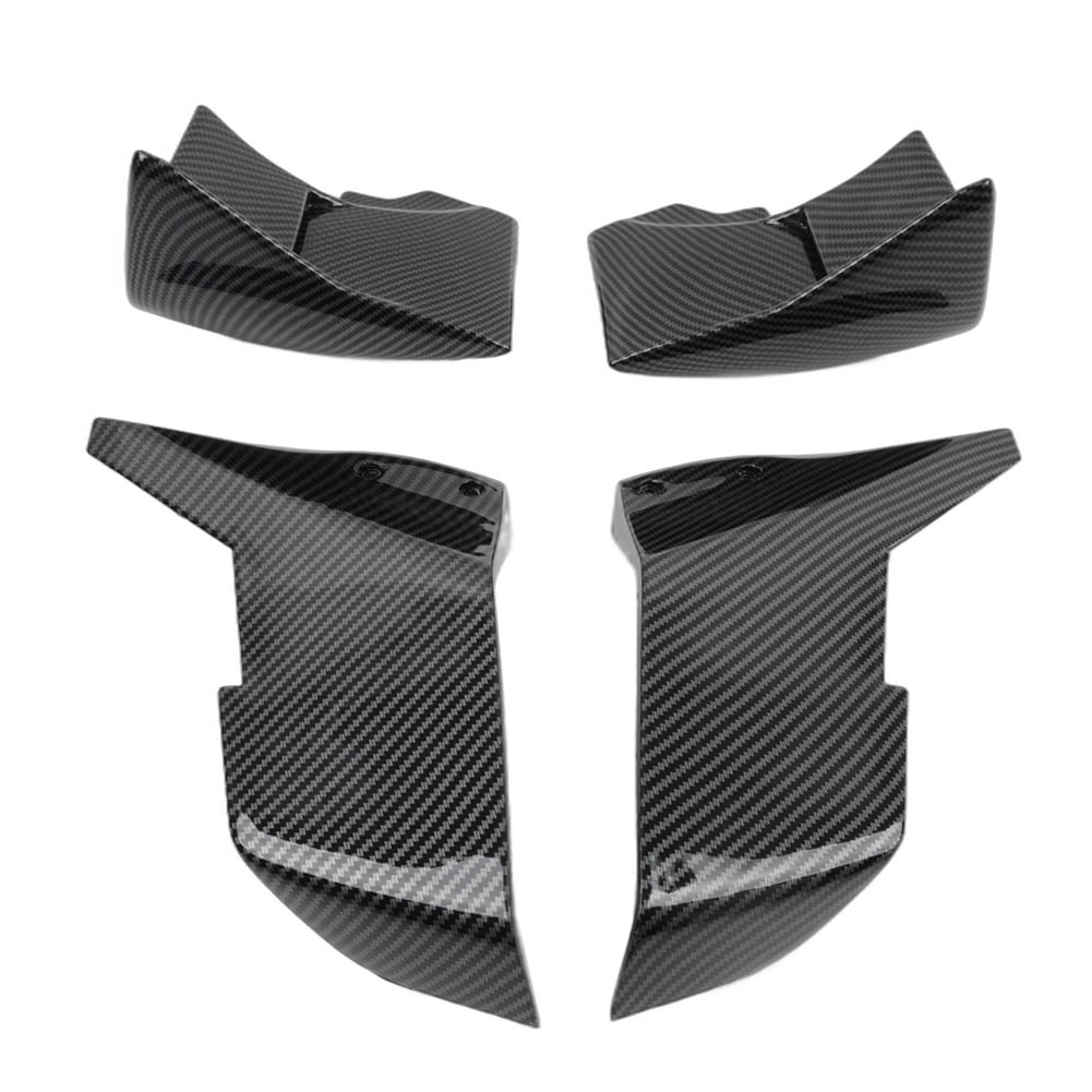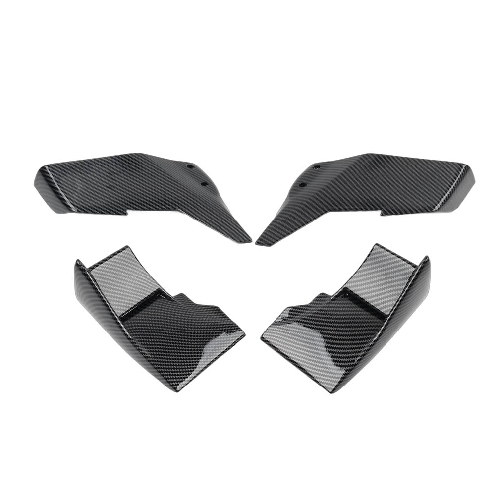 Vordere Winglets Aerodynamic Fixed Flügelverkleidung für Kawasaki Ninja H2 R 15-23 2.Pinge vergleichen Sie die Details vor dem Kauf. Front Winglets Aerodynamic Fixed Wing Fairing For KAWASAKI NINJA H2 R 15-23 Features: 1.high-quality and durable ABS plastic. It is not easy to break and no deformation after long using time. 2.Provide your motorcycle with a unique aggressiveness and sportiness. 3.Installation instructions not included. Professional Installation is Highly Recommended. Specification: Condition: Aftermarket Brand New Material: ABS Plastic (Not real carbon fibre) Placement on vehicle: Front, Right, Left Color: Carbon Fiber Black Fitment: For KAWASAKI NINJA H2 / H2R 2015-2023 (Please carefully check the model and year of your motorcycle before ordering) Package Included: 2Pcs Lower Aerodynamic winglets 2Pcs Upper Aerodynamic winglets Notes: 1.Due to the lighting and screen settings, the real color may slightly be different from the picture. 2.Please compare the details before you purchase.