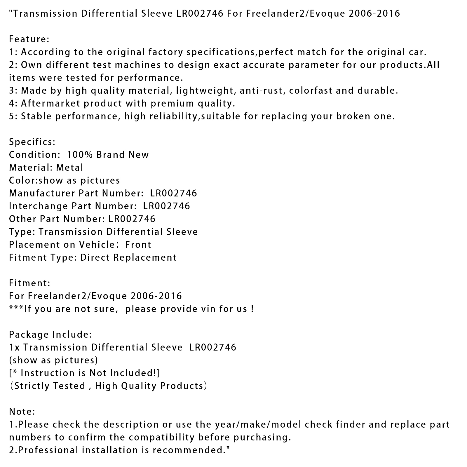 Transmission Differential Sleeve LR002746 For Freelander2/Evoque 2006-2016