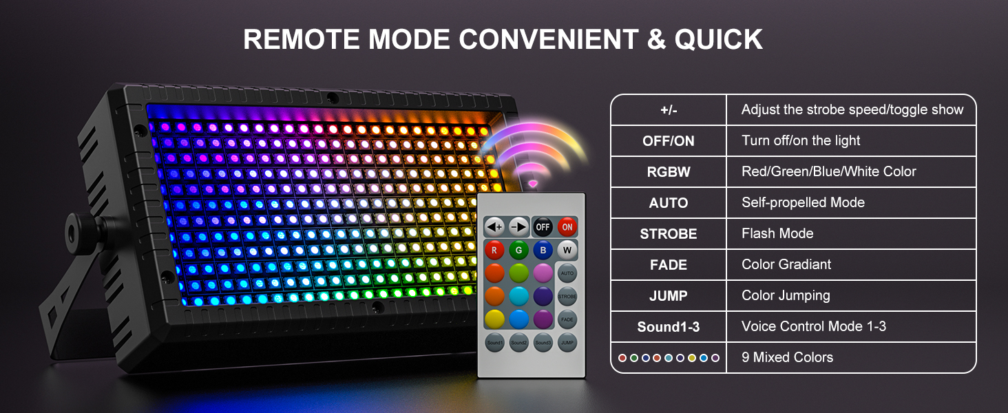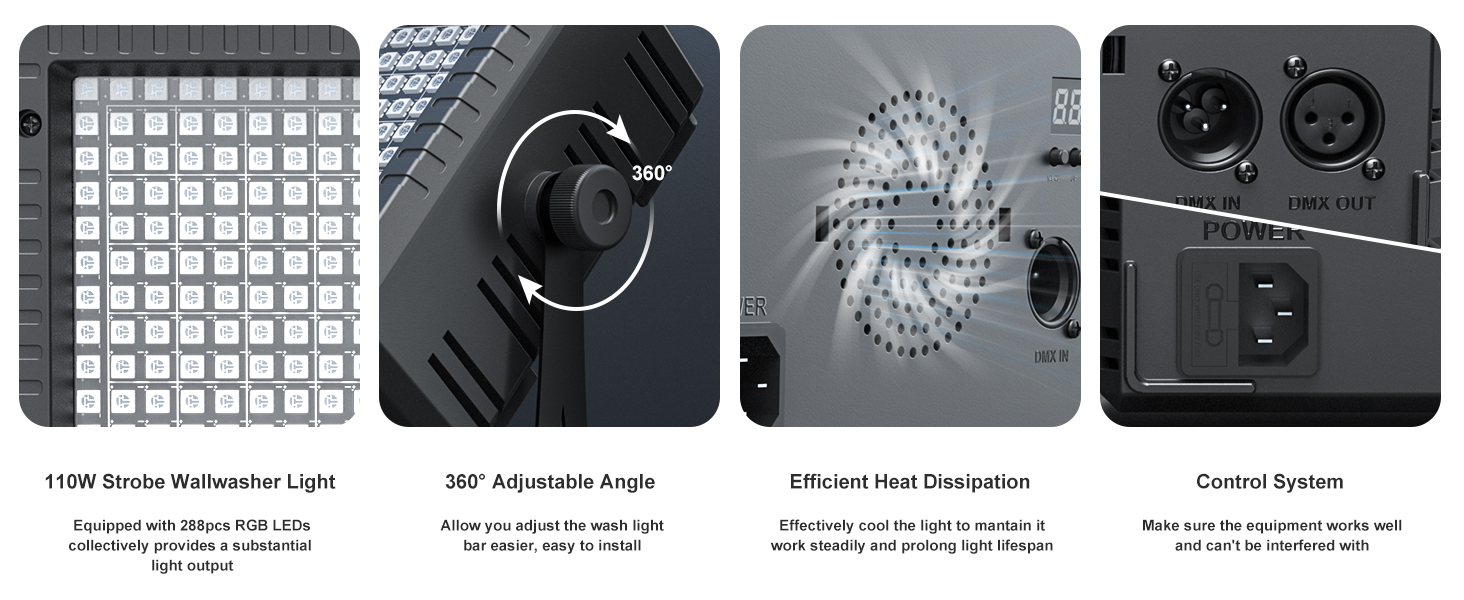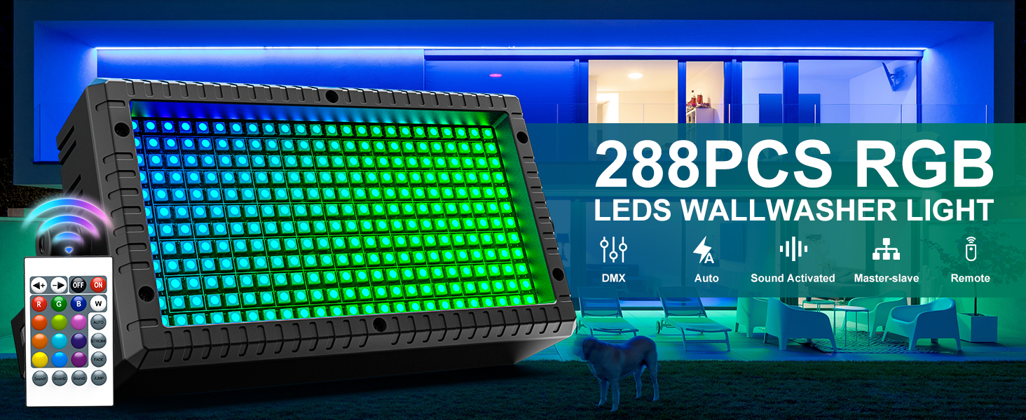 3.【Easy to Install】The light is compact in size, lightweight, and easy to operate, making it convenient to carry and suitable for various scenes. 4.【Adjustable Dimming】The 110W strobe effect wallwasher light supports infinite color mixing and offers smooth dimming capabilities, allowing users to create the perfect ambiance for any occasion.