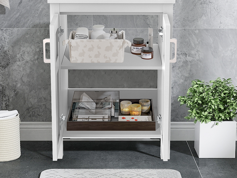 - This cabinet designed with 2 doors and shelf, provides ample storage space for your daily organization;