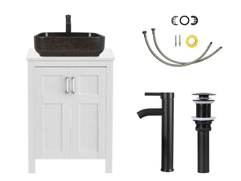 - Come with a matched faucet sets, pop up drain and Mounting Ring;