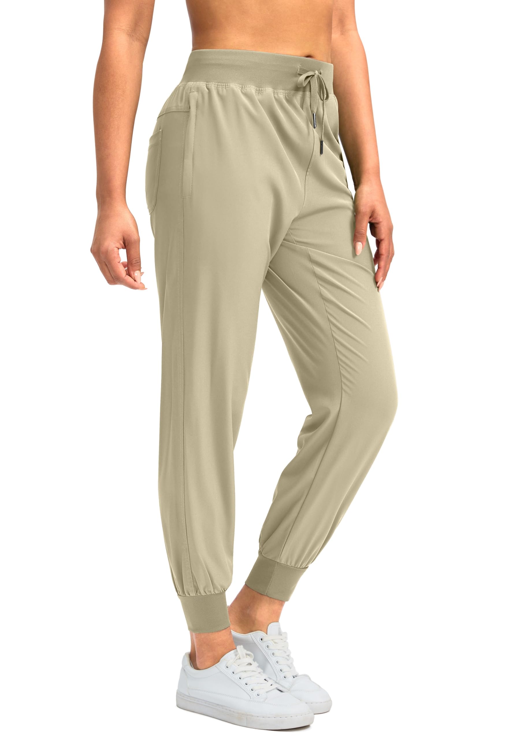 Soothfeel Women's Joggers with Zipper Pockets Lightweight Running Gym Travel Casual Workout Athletic Joggers Pants for Women Khaki