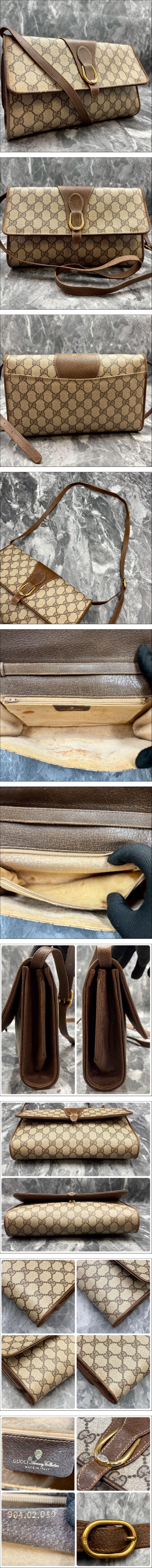 | Borsa a tracolla Gucci 904.102.050 GG beige pelle marrone logo hardware oro |