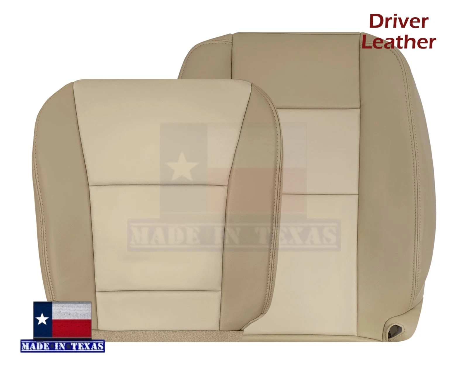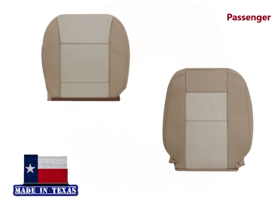 2006 - 2010 For Ford Explorer 2-Tone Tan Genuine Leather Driver Side Top and Bottom Seat Covers. This is a replacement of your original seat cushions cover Fits heated & power seats as well.