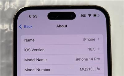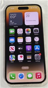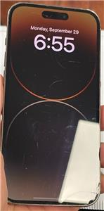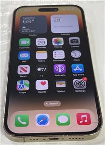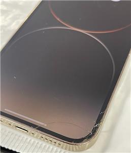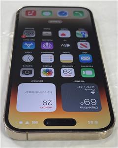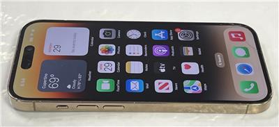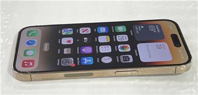 APPLE IPHONE 14 PRO 512GB GOLD (CARRIER UNLOCKED) USED. ITEM IS USED WITH COSMETIC SCRATCHES ON SCREEN AND ALSO SCREEN IS CRACKED ON THE BOTTOM RIGHT CORNER NOF SCREEN. ALSO COSMETIC WEAR ON SIDES AND BACK OF PHONE BOTTOM LENS HAS A CRACK, AND 4 BLACK SPOTS POP UP ON CAMERA ONLY WHEN ZOOMED TO 3x. PLEASE SEE ALL PHOTO'S. BATTERY HEALTH IS 79% AND MAY NEED TO BE CHANGED. PHONE ONLY, CHARGER NOT INCLUDED.