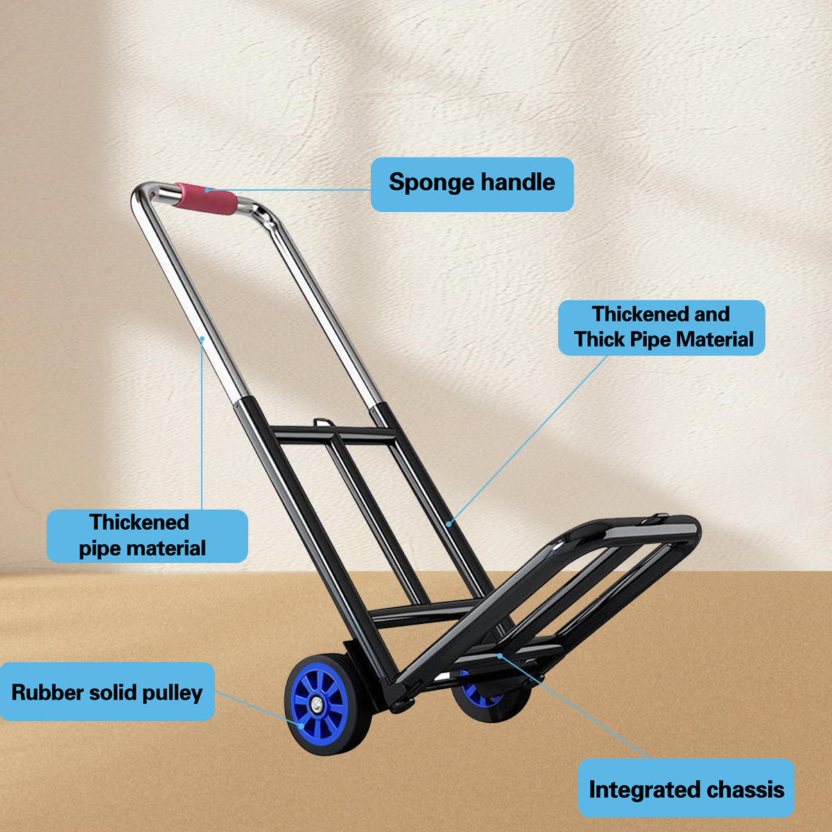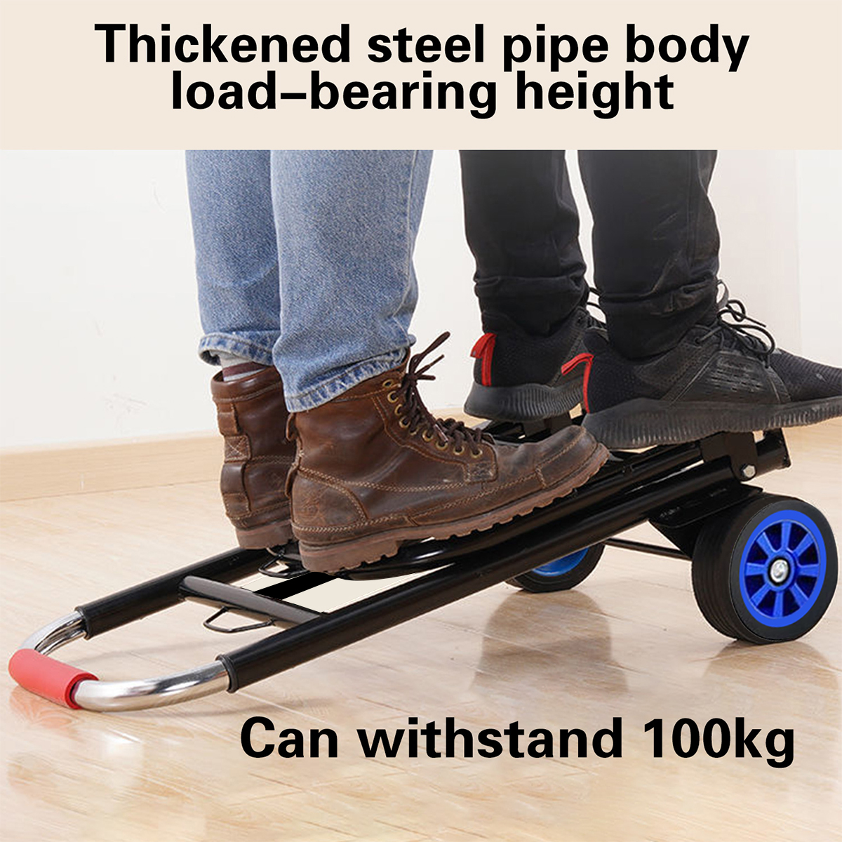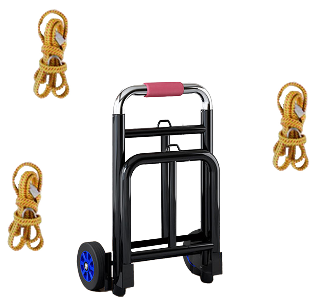 2. The trolley is made of high-quality steel and is sturdy and durable. The handcart also includes two detachable elastic bands for safely securing the goods during transportation