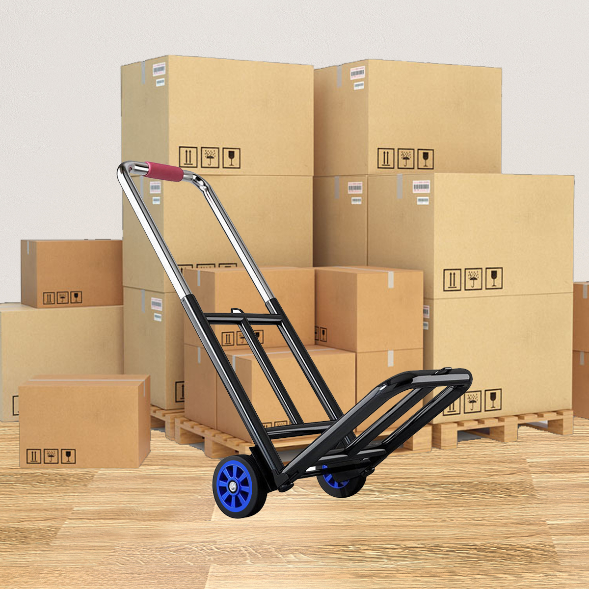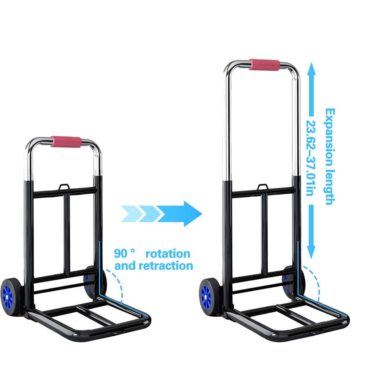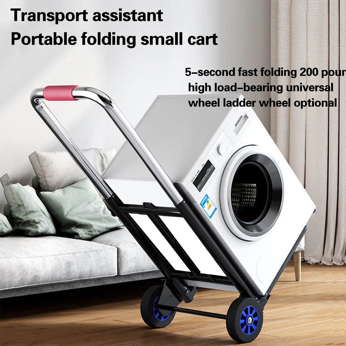 2. The trolley is made of high-quality steel and is sturdy and durable. The handcart also includes two detachable elastic bands for safely securing the goods during transportation