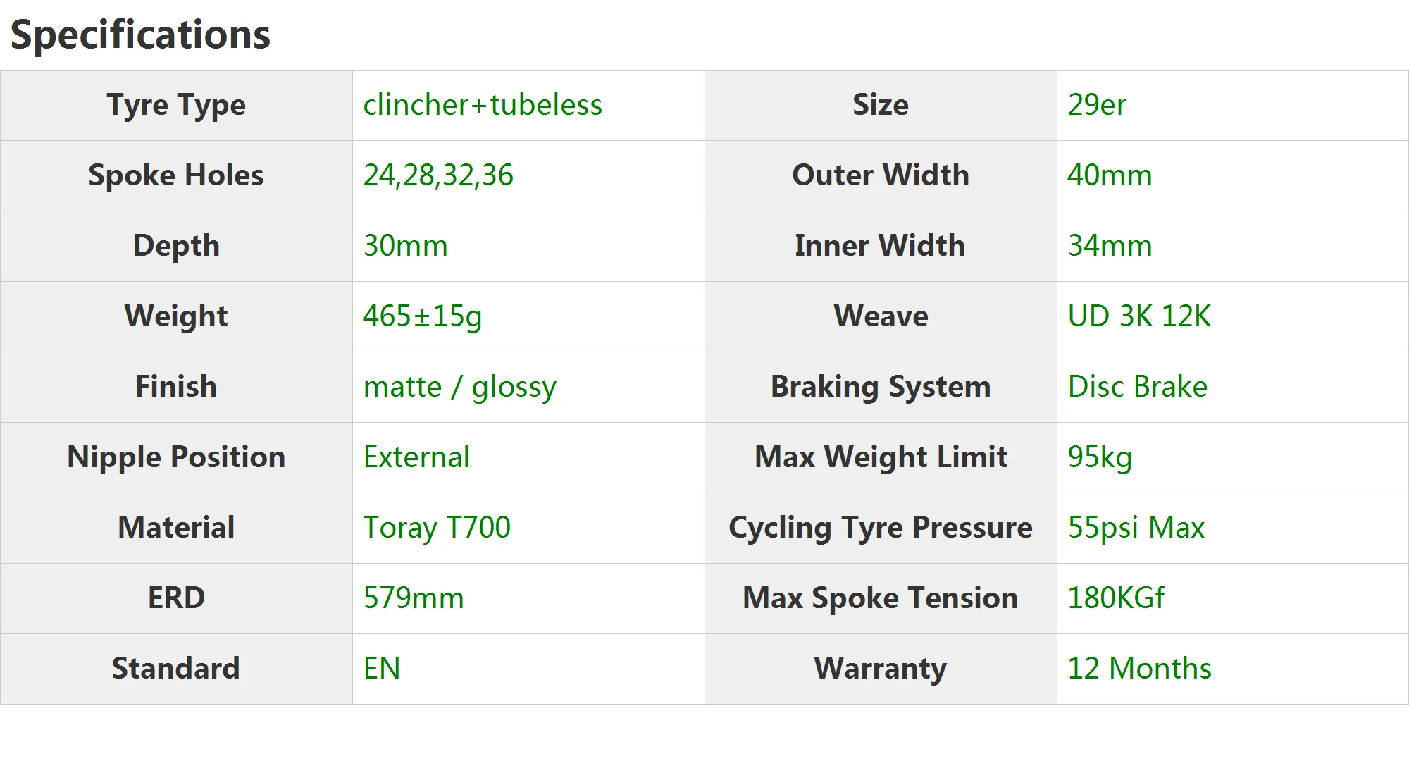 29 Inch Carbon Rim MTB 30mm Deep 40mm Wide 24H 28H 32H Tubeless Hookless UD 3K 12K Matte Glossy 465g For All Mountain Bike Wheel