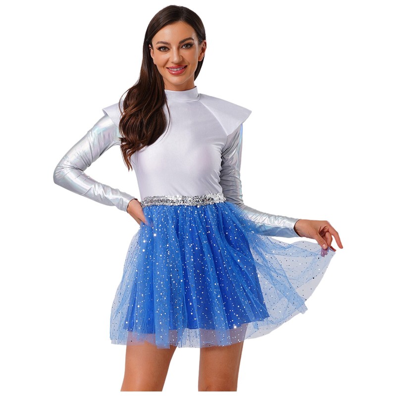 Ideal for Halloween parties, space-themed events, or any costume-centric gatherings, this dress will let you embrace the festive spirit and show off your unique style.