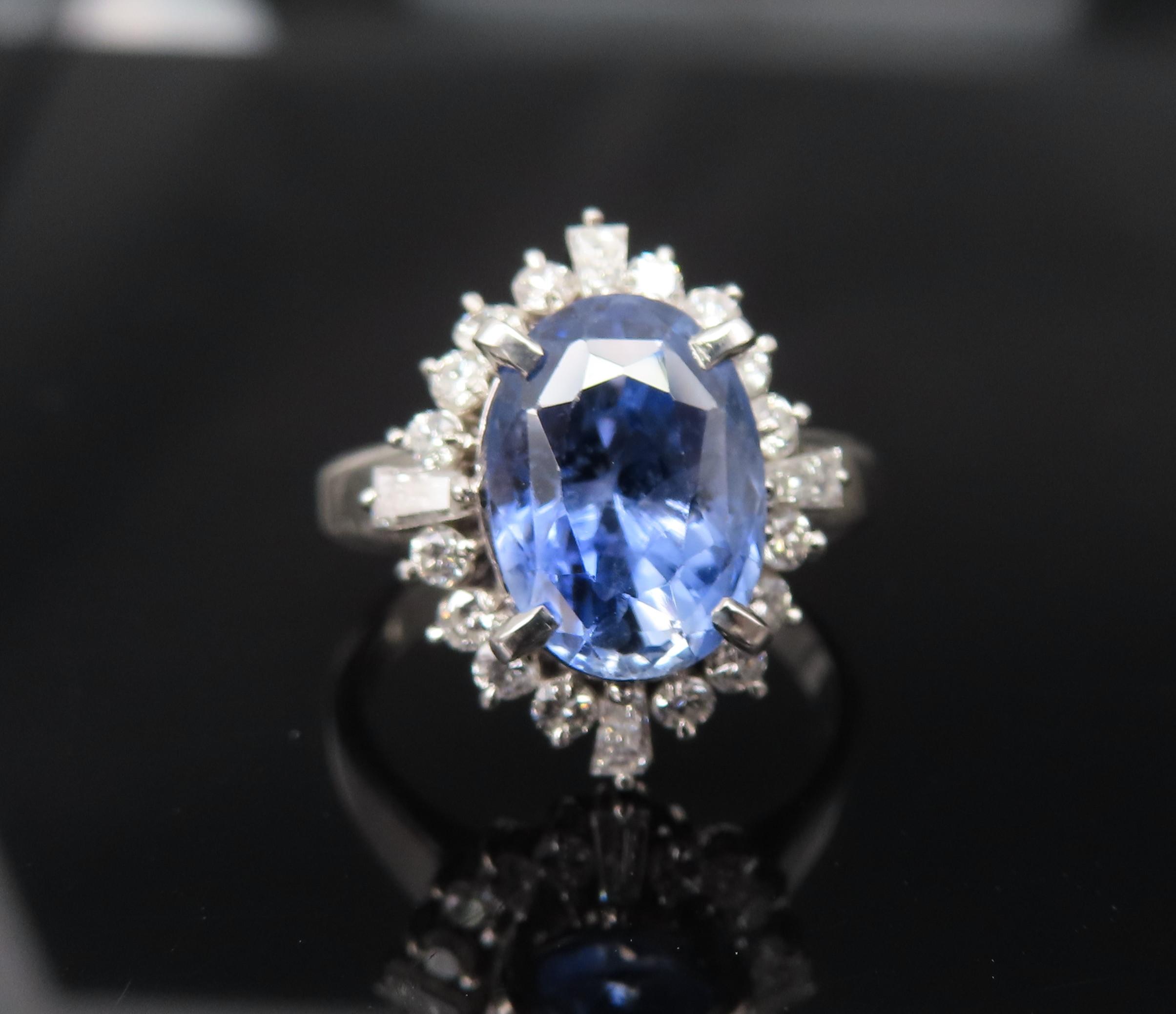 Along with this superb natural sapphire, the diamonds are high grade as well.