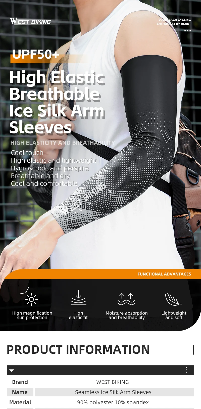UPF 50+ Ice Silk Arm Sleeves