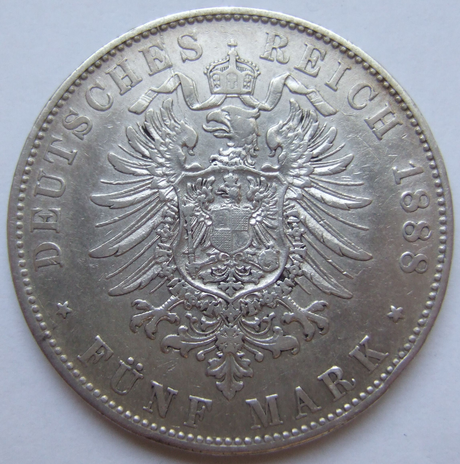 Kaiserreich silver 5 Mark Otto King of Bavaria 1888 D in Very fine