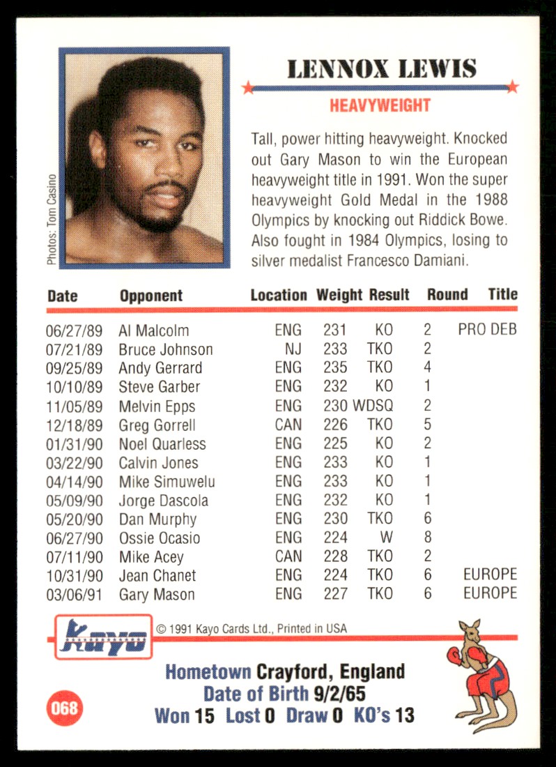 | 1991 KAYO BOXING LENNOX LEWIS #68 |