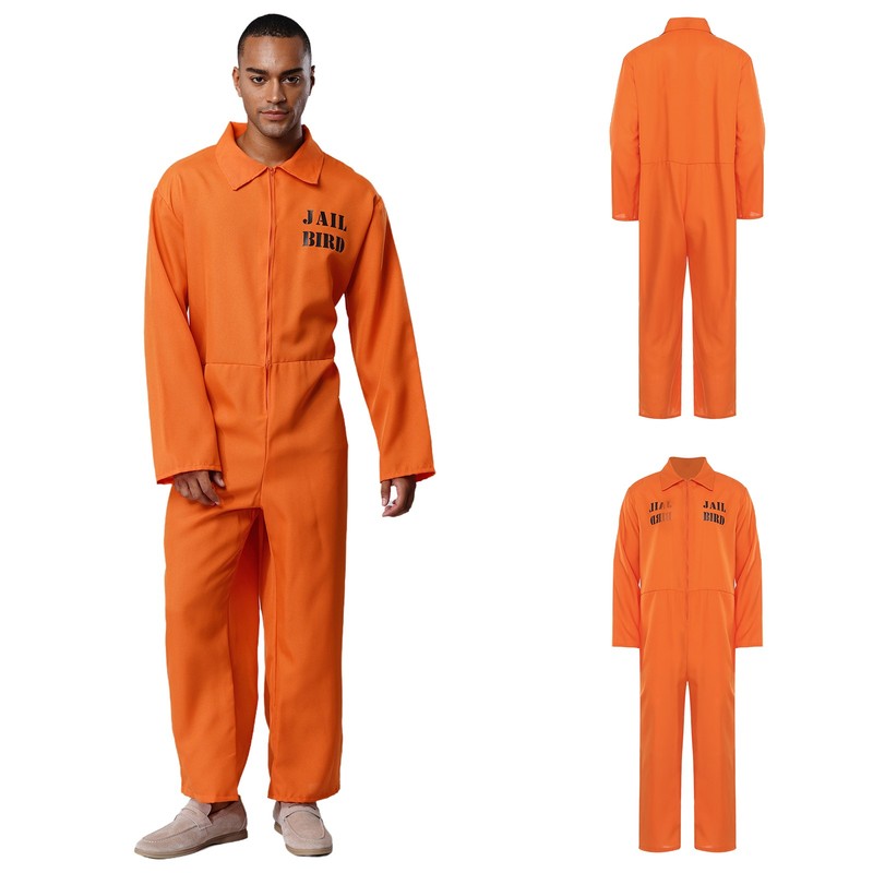 The jumpsuit with a button-down or zipper front is not only easy to put on and take off but also adds a touch of authenticity to the prisoner uniform aesthetic.