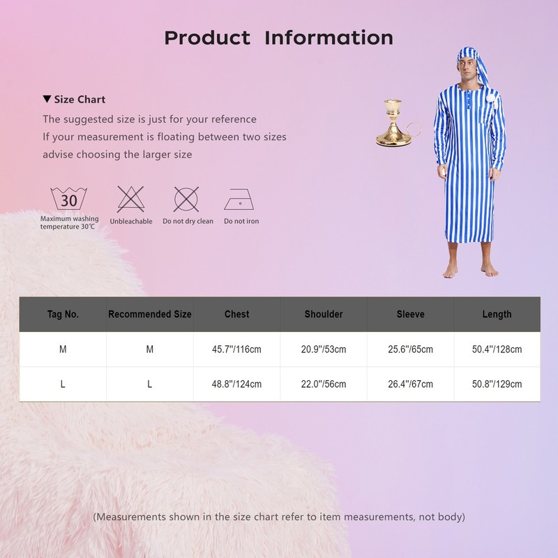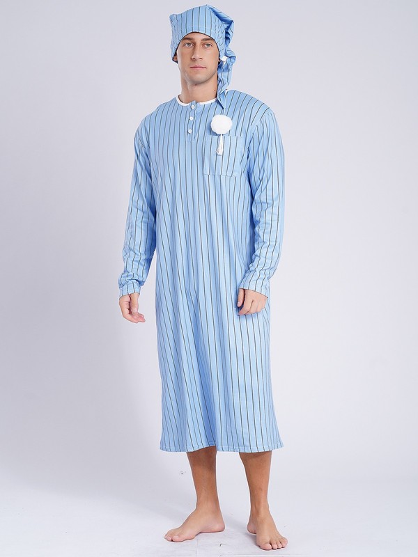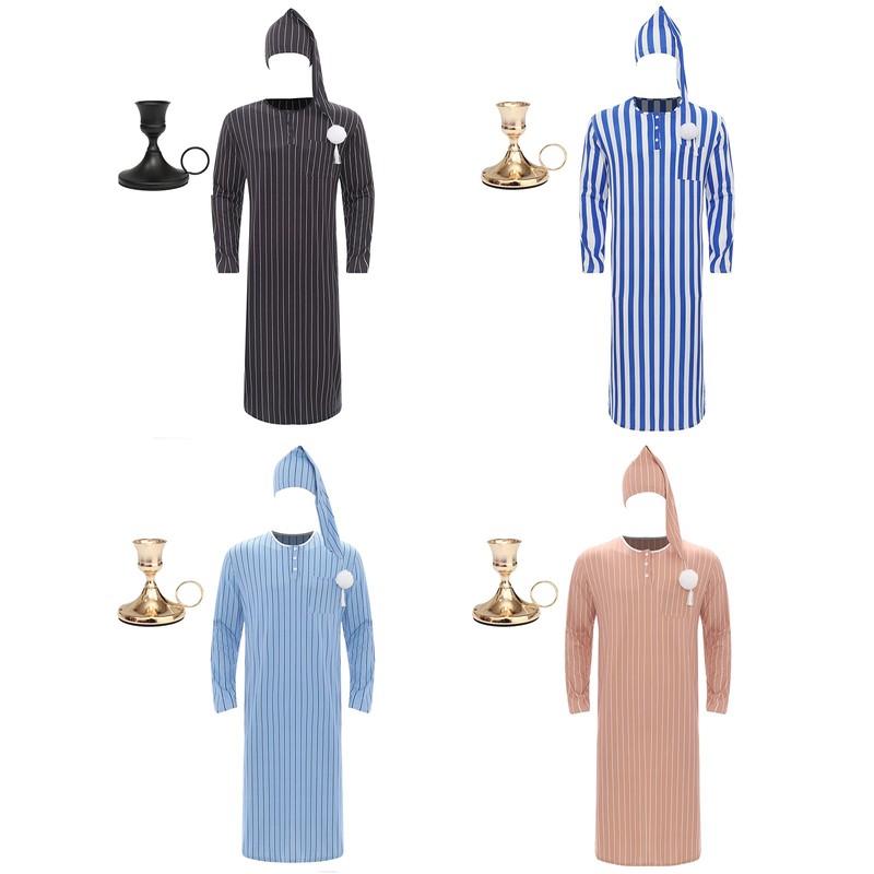 Mens Dress Up Rave Bathrobe Carnival Pajamas With Hat Nightgown Striped Costume