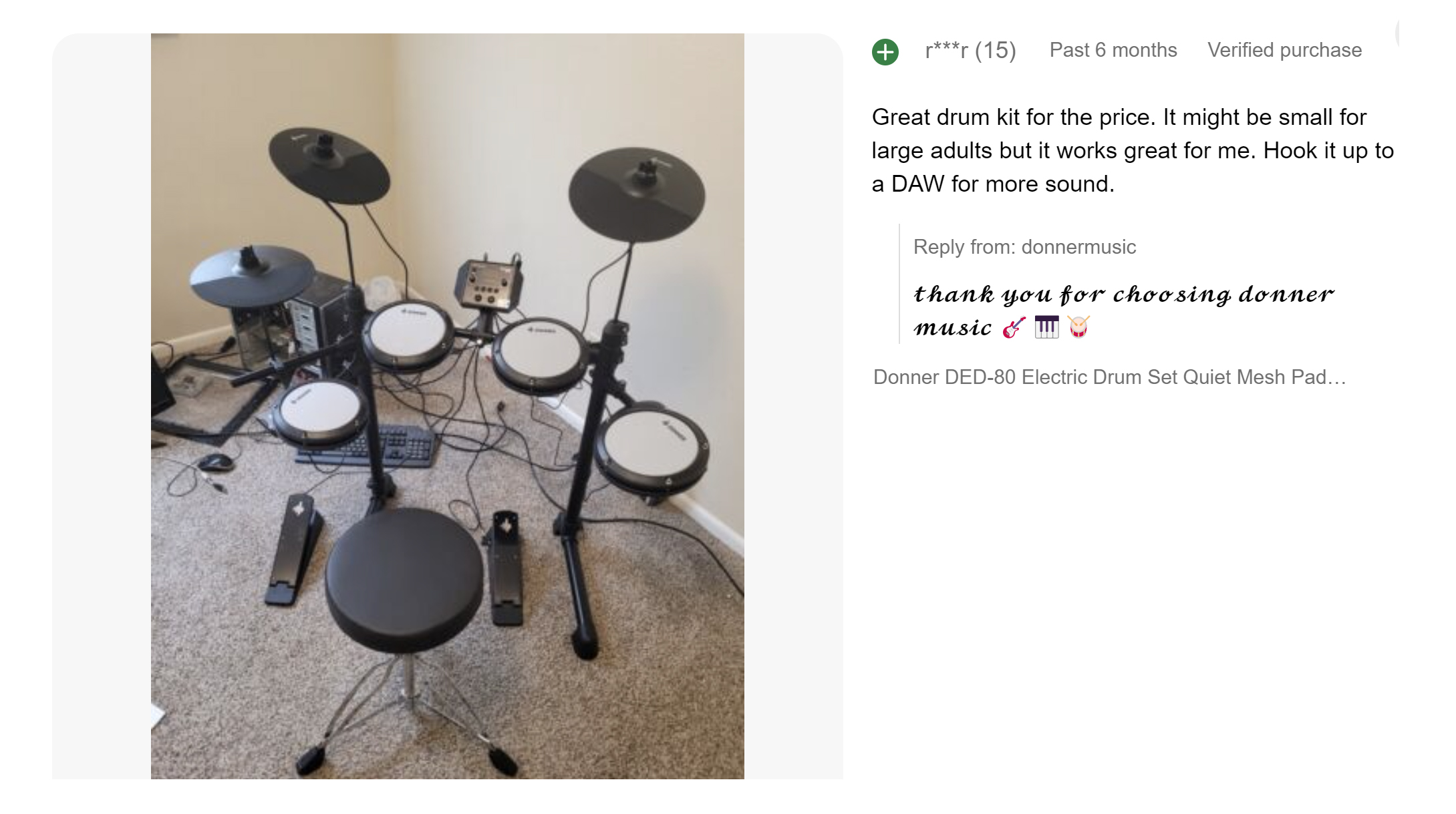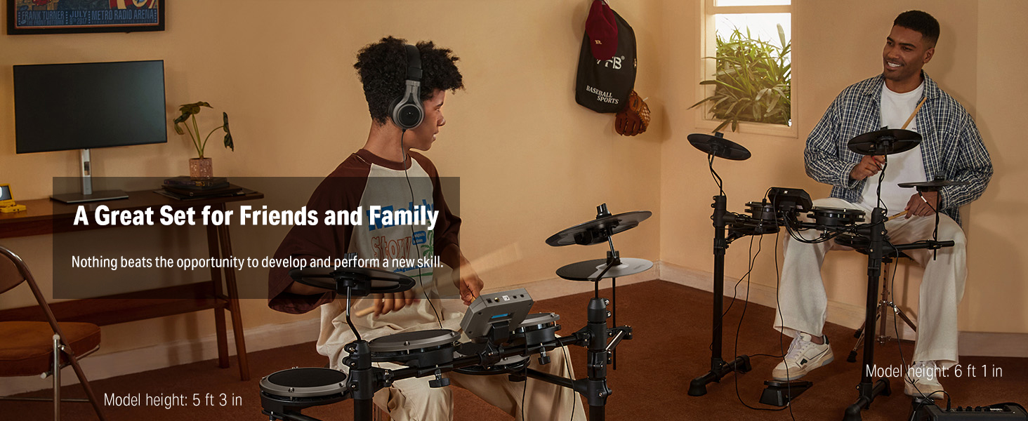 【 Ideal for Apartment Living 】Donner has developed a more stable drum stand with a size suitable for Youth, making it an ideal choice for apartment living. It is portable and foldable for easy storage and practice at home. The DED-80 drum kit can be connected to DAW software via the USB MIDI interface, allowing it to be used as a music creation tool. Use our headphones for silent practice without disturbing anyone in the apartment.