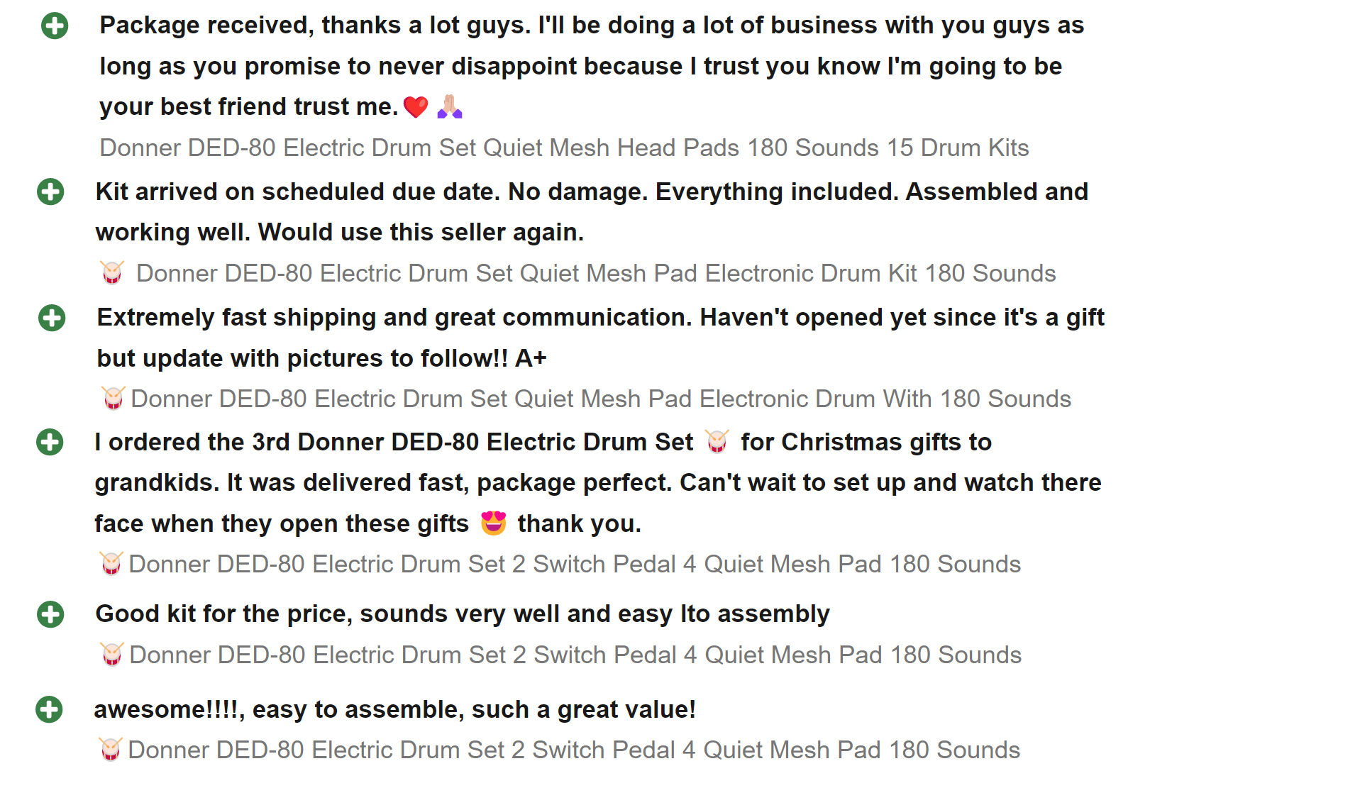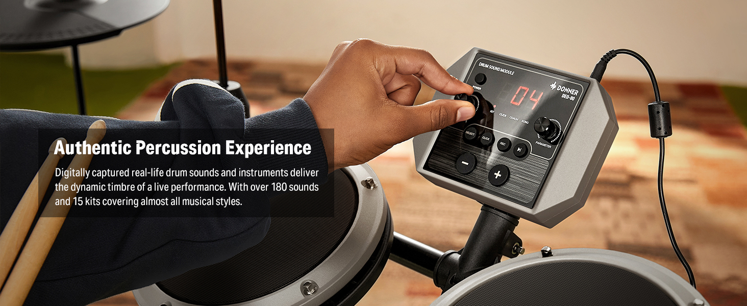 【 All the Sounds You Need 】The Donner DED-80 electronic drum set uses intelligent dynamic clarity technology to provide realistic sounds and fun playability. It features 180 sound options, 15 drum kits, and 30 demo songs, covering a wide range of music genres.