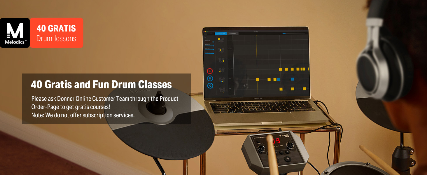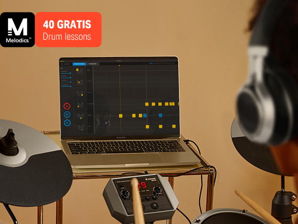 【 Interactive Drum Kit Lessons 】40 Free virtual lessons from Melodics for fun. You can hone your skills in any style. Remember to contact customer service to receive the lessons! TIPS: We do not offer subscription services.