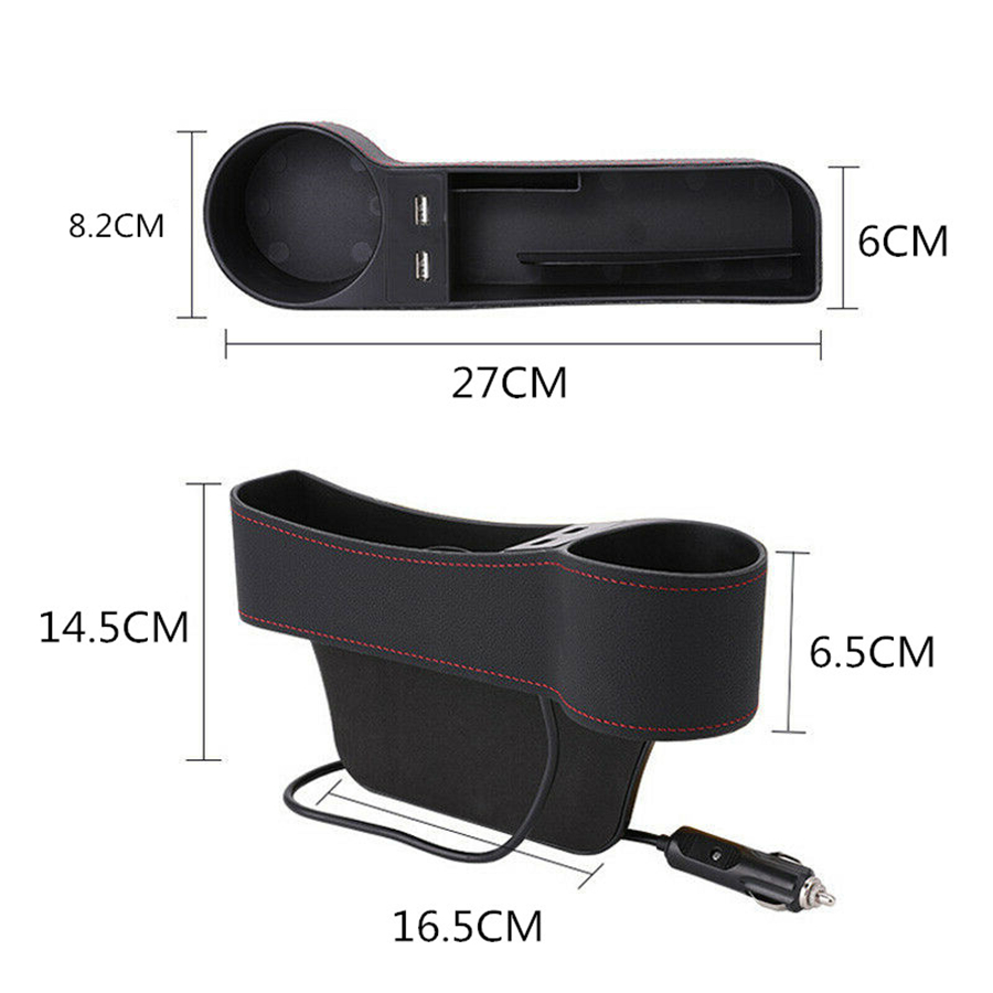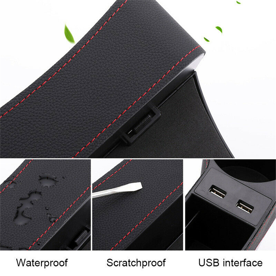 Car Right Side Seat Catch Box Storage Organizer Pocket PU Leather Dual USB Cup Holder x1