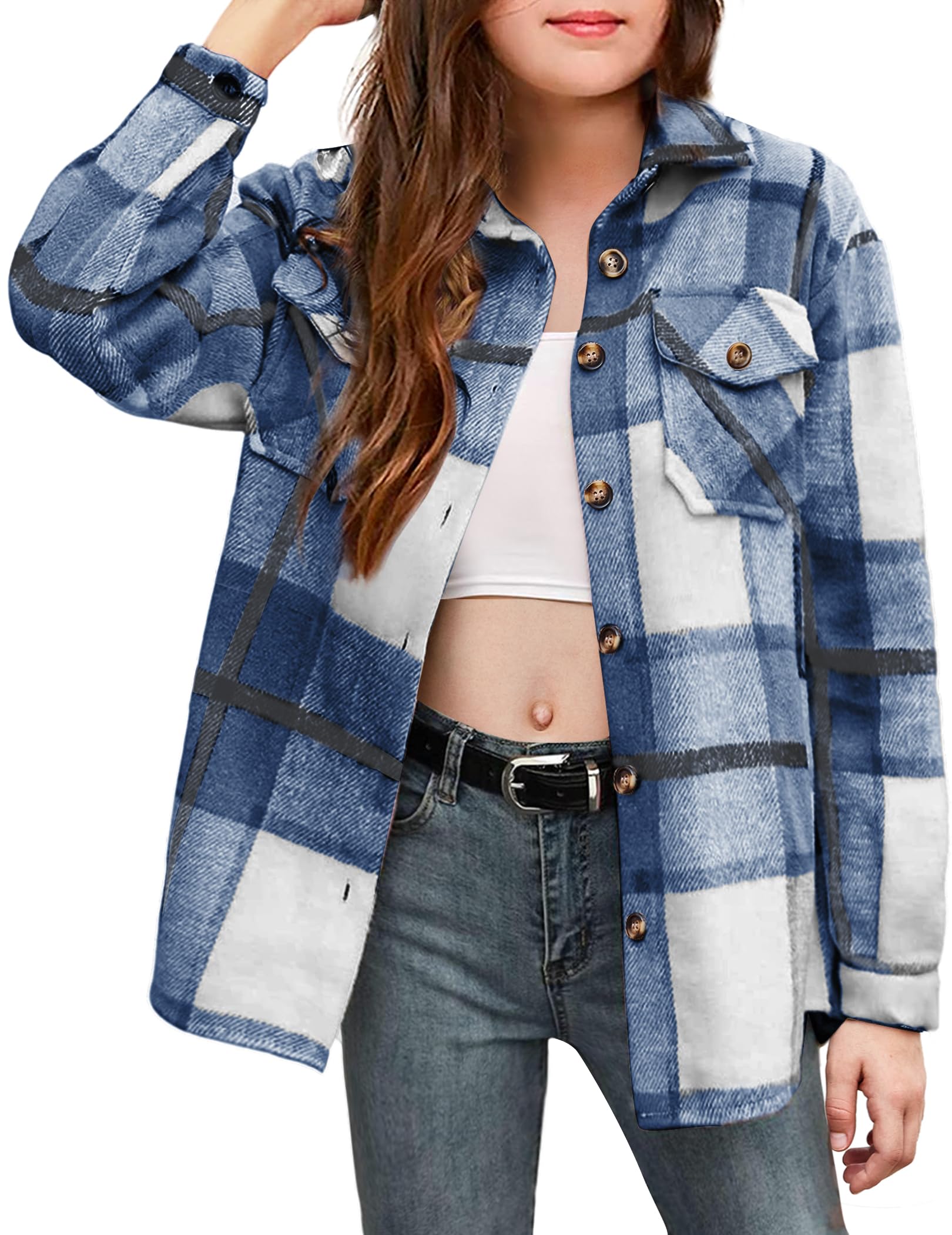 Arshiner girls long sleeve shirts jackets for 2023, it is designed whith pockets, convient to handle hairpin or others. Plaid design makes it a fashion choice for your girls wordrobe. It can be worn as a button-closure shirt or just be worn as a jacket with jeans, pants, or beautiful dresses, nice choice for fall winter if you are looking a shirts jackets for your girls.