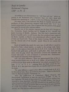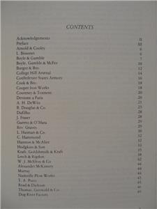 Boyle & Gamble & Company, Burger & Brothers, College Hill Arsenal, The Confederate States Armory, James Conning, Cook & Brother, Courtney & Tennant and Robert Mole & Sons, A.H. DeWitt, Dufilho, Fayetteville Armory, Firmin & Sons, Georgia Armory, L. Haiman & Brother, Halfmann & Taylor, Hayden & Whiden, C. Heinz, Hyde & Goodrich, Isaac & company, E. J. Johnston & Co., Kraft, Goldshmidt & Kraft, Leech & Rigdohn (Memphis Novelty Works), W. J. McElroy & Co., McKennie & Co., Mitchell & Tyler, Nashville Plow Works, Palmetto Armory, Thomas, Griswold & Co., The Virginia Armory, James Westa, and Products of the Dog River Factory are all included. Additionally the Addendum published at the end of the book presents additional companies and information.
