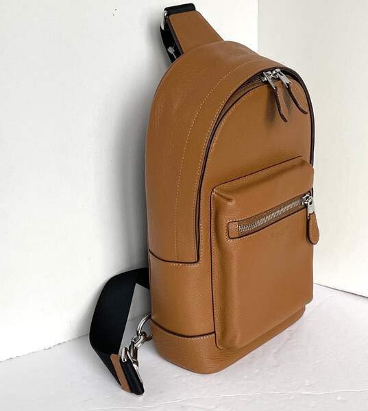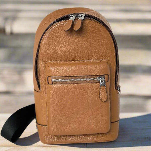 The West Pack is crafted of refined pebble leather. This men's leather sling bag is both durable and stylish for any look on the go. The convenient outside zip pocket keeps your top essentials handy, while the main compartment holds your other items with ease. This men's crossbody sling bag is neutral and versatile for any occasion, making it a staple in your bag collection.