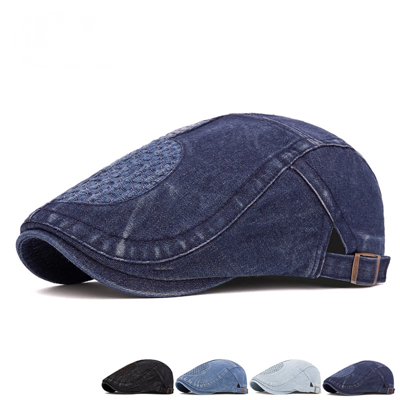 Men Retro Denim Duckbill Newsboy Flat Hat Gatsby Golf Driver Adjustable Ivy Cap